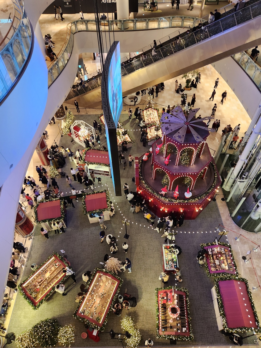 우선 가장 거대하게 보이는 트리입니다! 위시트리라고 이름이 붙어있는 것 같은데요, 정말 거대한 트리입니다. ㅎㅎㅎ 낮에는 이런식이고 저녁 사진이 조금 있다가 보여드릴게요. 트리 아래쪽은 거울의 방?처럼 꾸며져 있어서 들어가 보실 수 있습니다. 낮에는 사람이 조금 할랑하지만 저녁에 가보니 아주 줄이 길더라고요.....ㅎㅎㅎㅎ 원래 크리스마스 장식은 저녁이 메인이라 어쩔 수 없다고 생각합니다....ㅎㅎ