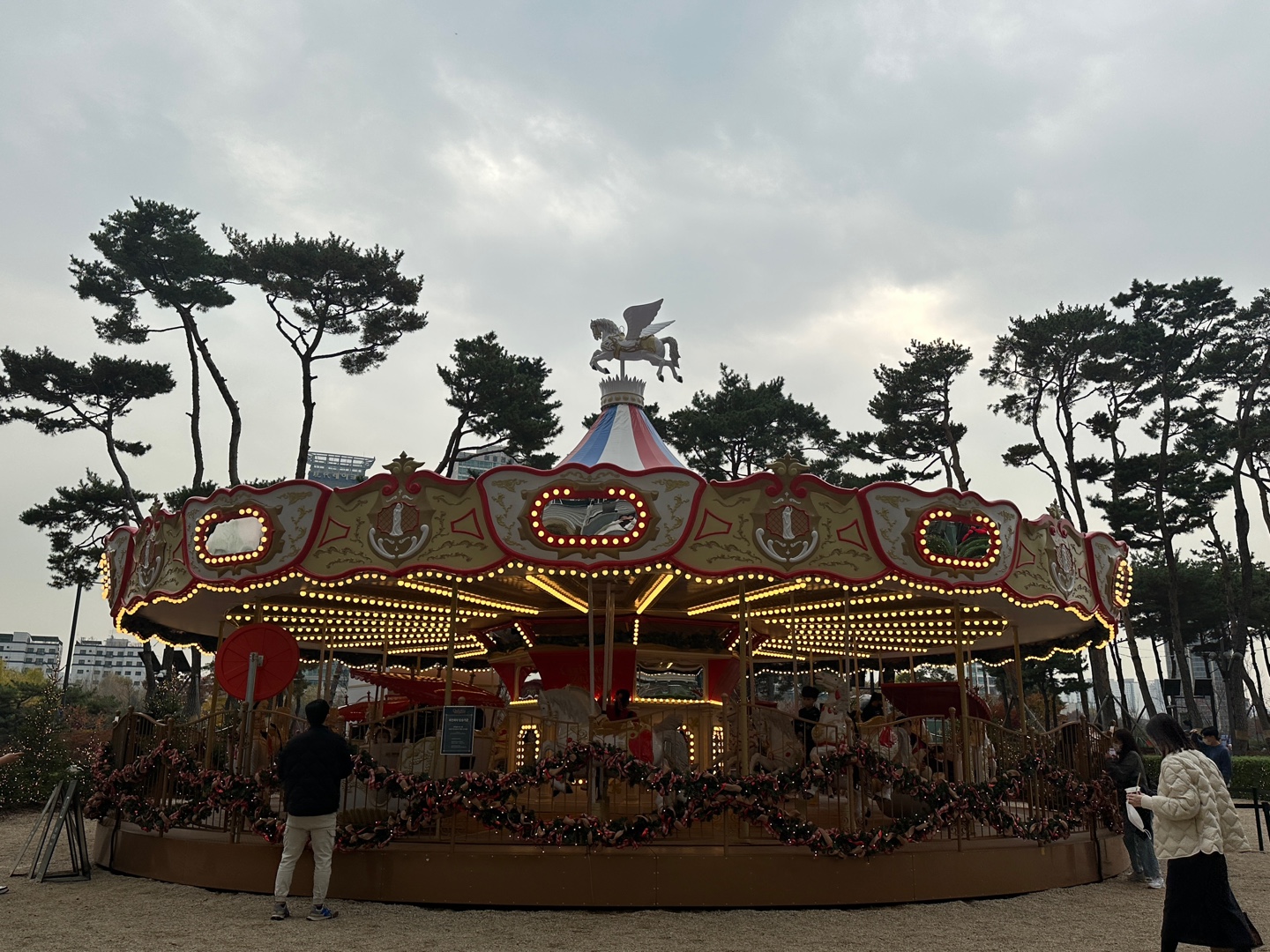 옆에 있는 낮에 본 회전목마입니다. 확실히 저녁이 훨씬 예뻐요...ㅎㅎ 반짝반짝 따뜻한 불빛이 확 들어오거든요. 하지만 낮에도 불을 아예 꺼두는것은 아닙니다.