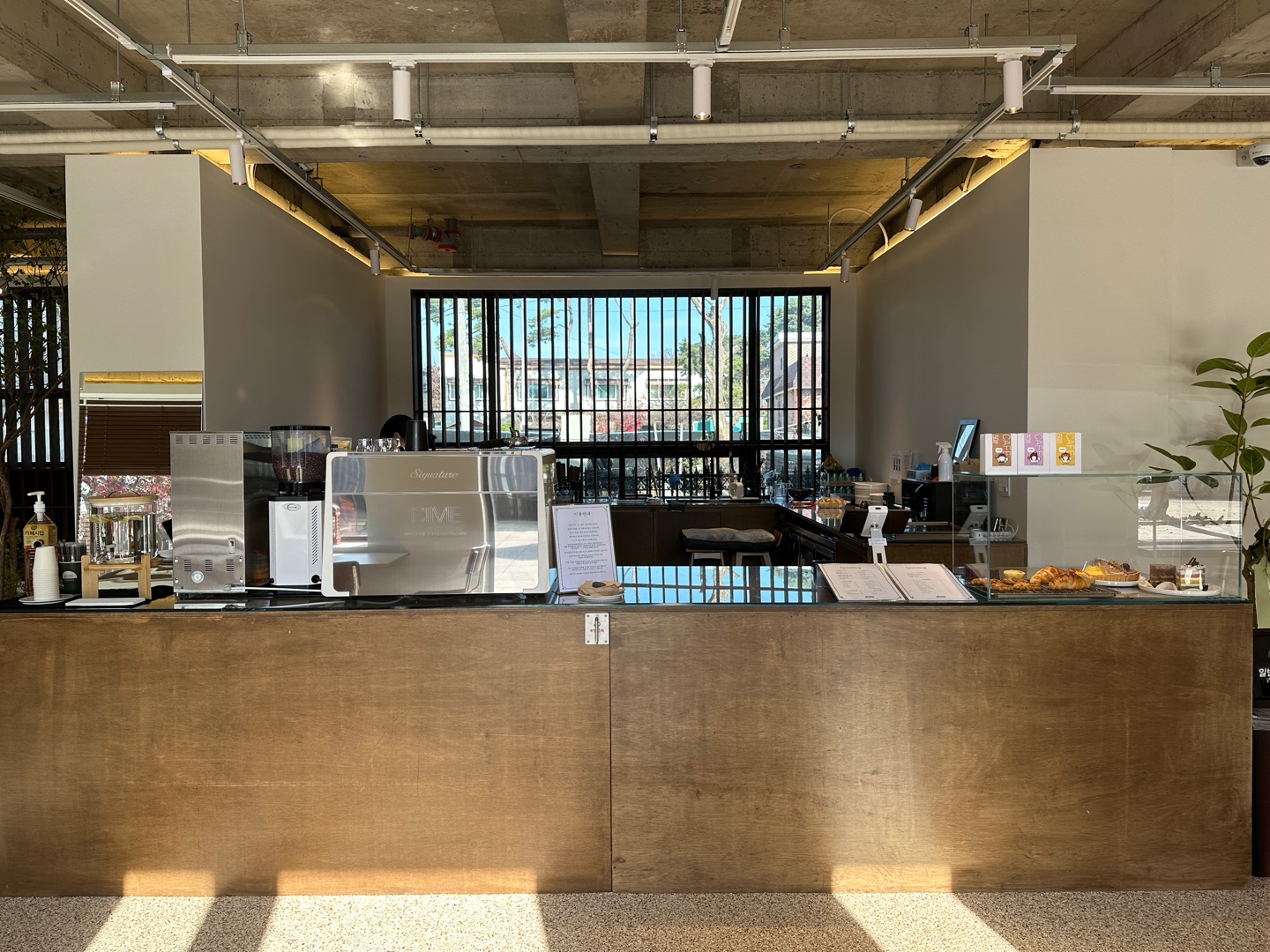 카운터를 중심으로 오른쪽 왼쪽 자리가 나눠져 있습니다. 창가 쪽이 전부 남향인 건지 해가 챡~~ 아름답게 들어온답니다. 카페 바닥이 약간 오돌토돌?(이 바닥재를 설명할 수 없네요...ㅎㅎ 용어를 모르겠습니다.)해서 모래밭에 해가 들어오는 것처럼 느껴지기도 합니다. 참 예쁘더라고요!