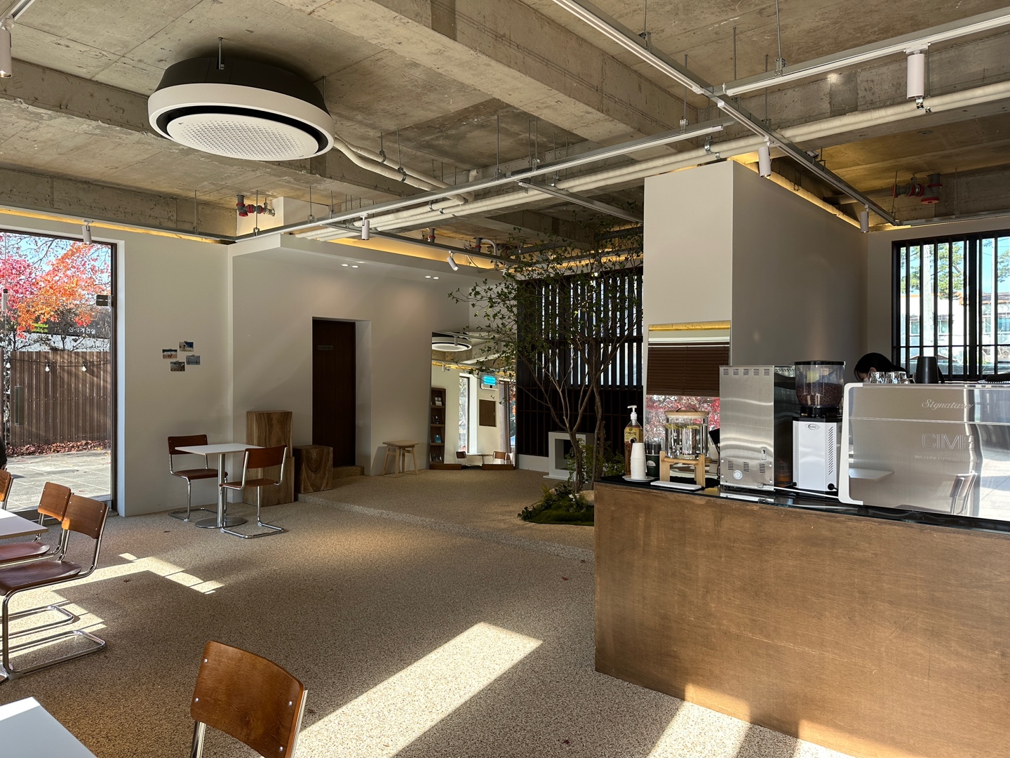 아직 추워지기 직전이어서 카페 창문은 모두 활짝 열려있는 모습입니다. 햇빛과 바람이 샥~ 잘 통하게 되어있는 구조였어요.