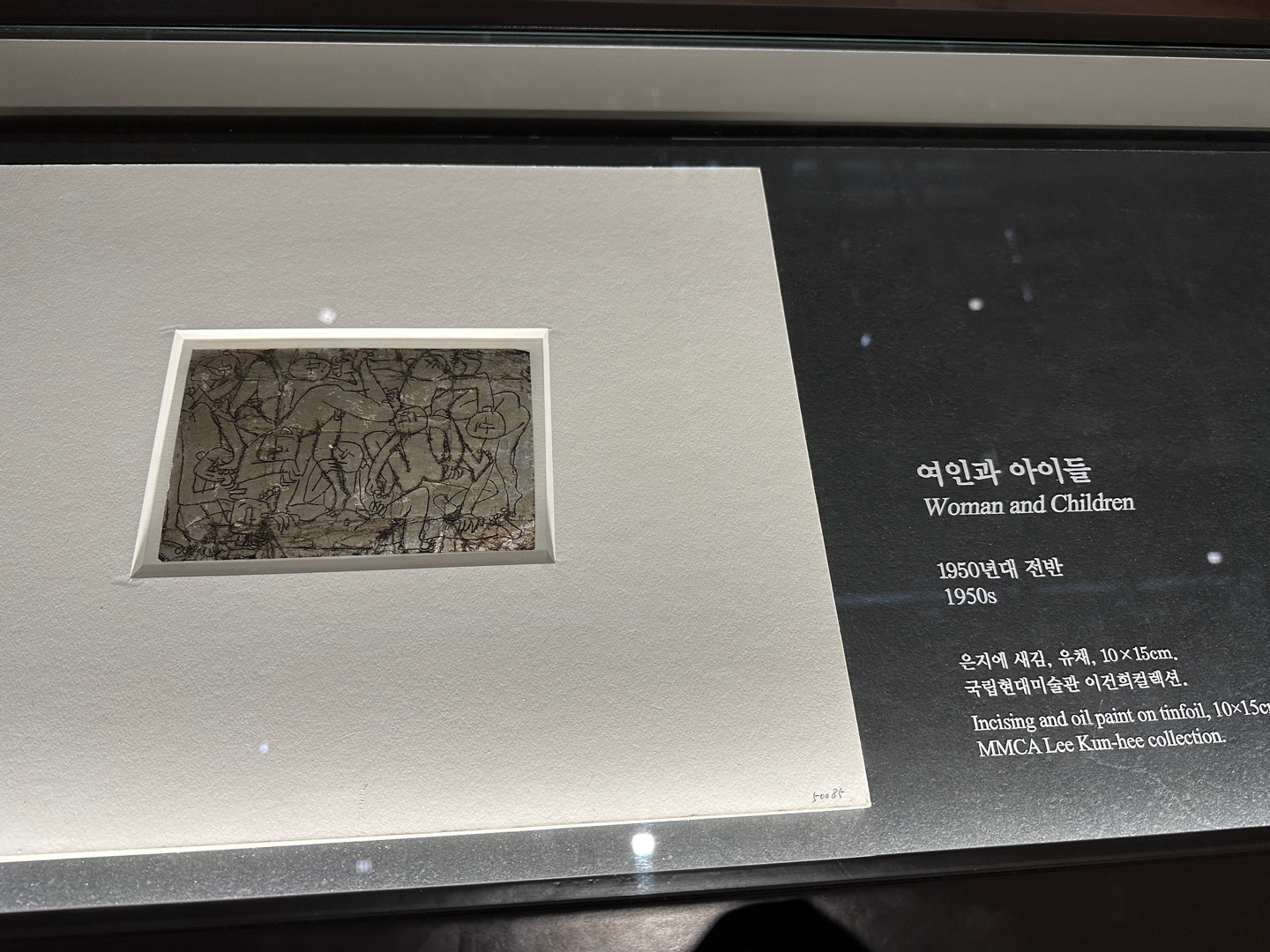그리고 이중섭만의 스타일이라고 불리는 은지화도 한곳에 모여져 있었는데, 한때는 그가 가난해서 캔버스 살 돈이 없어 담배 피우고 나오는 이곳에 그림을 그렸을 것이라는 추측 아닌 추측이 있었는데 확실한 이유는 아무도 알지 못한다고 하네요.