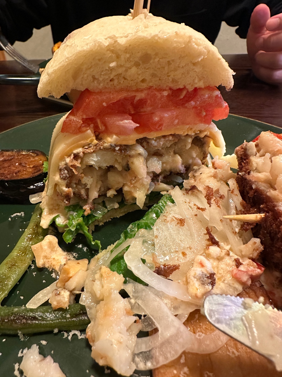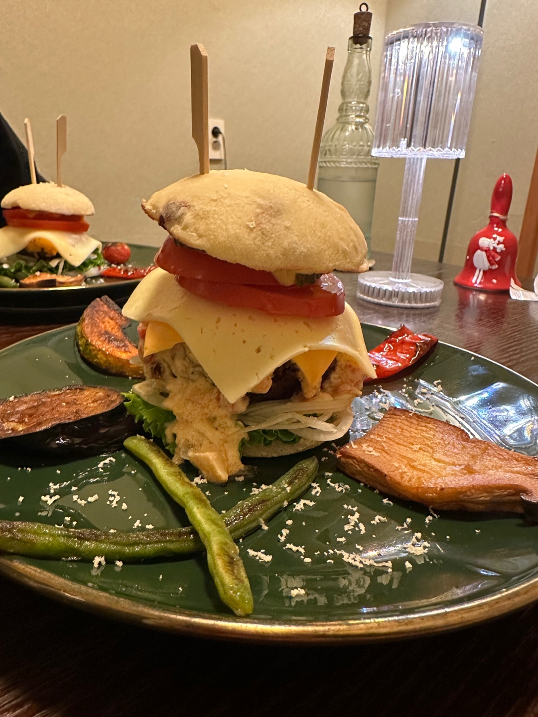 그리고 무엇보다 옆에 올라온 가니쉬들이 모두 야채인데요, 보통 햄버거를 먹으면 감자튀김과 함께하는데, 이렇게 구운 야채들과 함께 먹으니 뭐랄까... 더 건강한 느낌이랄까. ㅎㅎㅎ 근데 이 야채들이 또 다 기가 막히게 맛있게 구워져서 정말 요리를 먹는 느낌이었습니다. ㅎㅎ