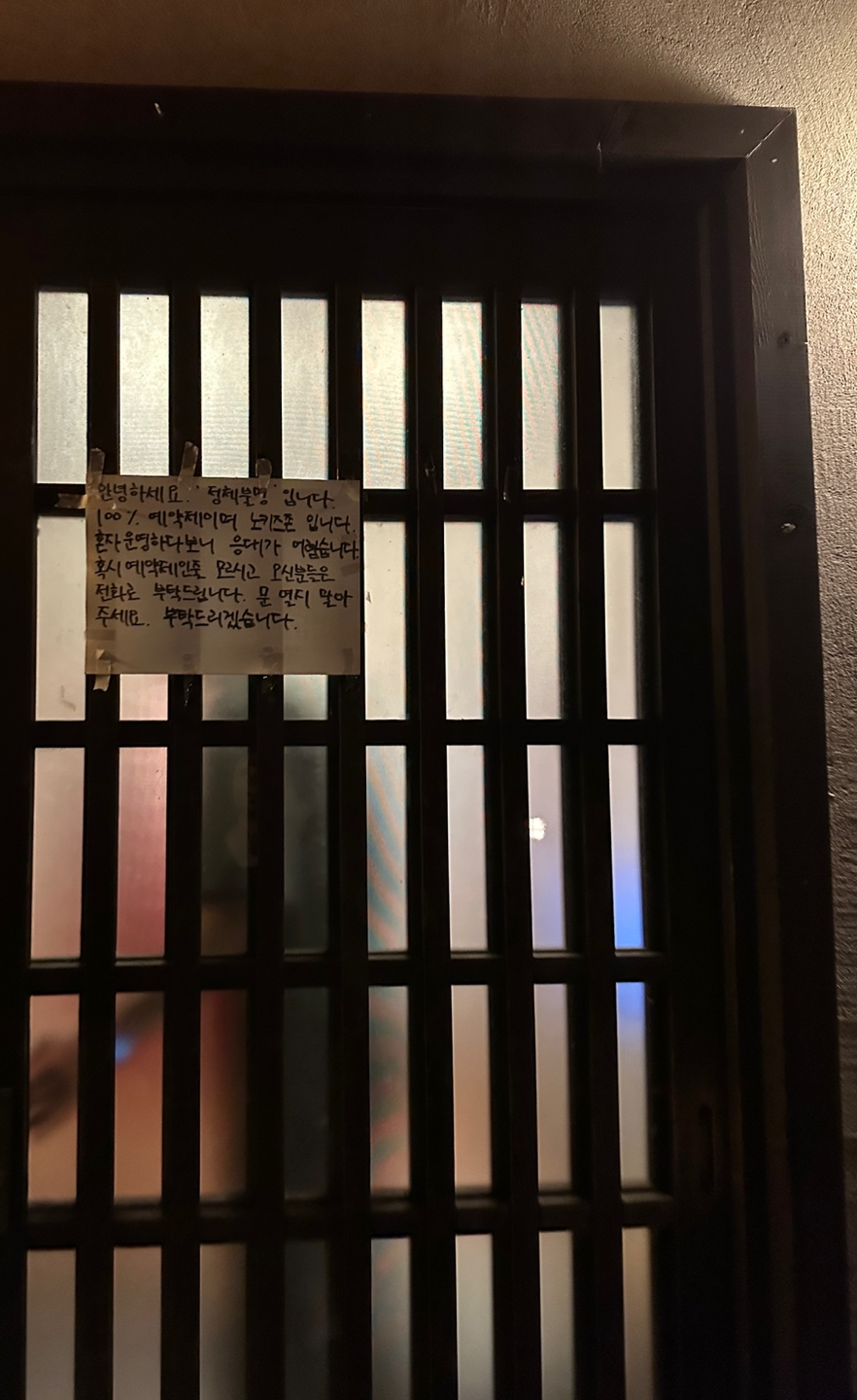 일본 전통가옥처럼 생긴 독특한 건물입니다. 낮에 보면 더 예쁘던데, 저는 밤 8시에 예약해서 갔던지라 사진이 이렇네요. ㅎㅎㅎ