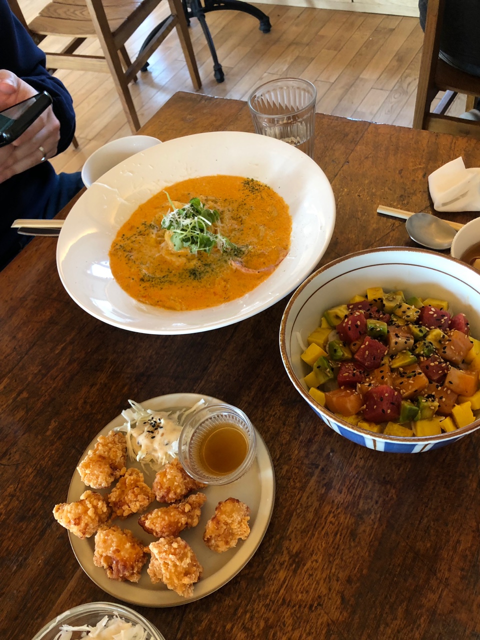 그리고 정말 맛있었던 딱새우 크림우동!! 이름에 크림이 들어가지만 소스가 전혀 느끼하지 않아서 통통한 우동면에 잔뜩 뭍혀서 먹기 좋았고요, 닭고기 튀김 찍어먹어도 맛있고 소스 양이 섭섭하지 않아서 퍽퍽 퍼먹기도 좋았어요. 이 메뉴 꼭 추천해 봅니다!