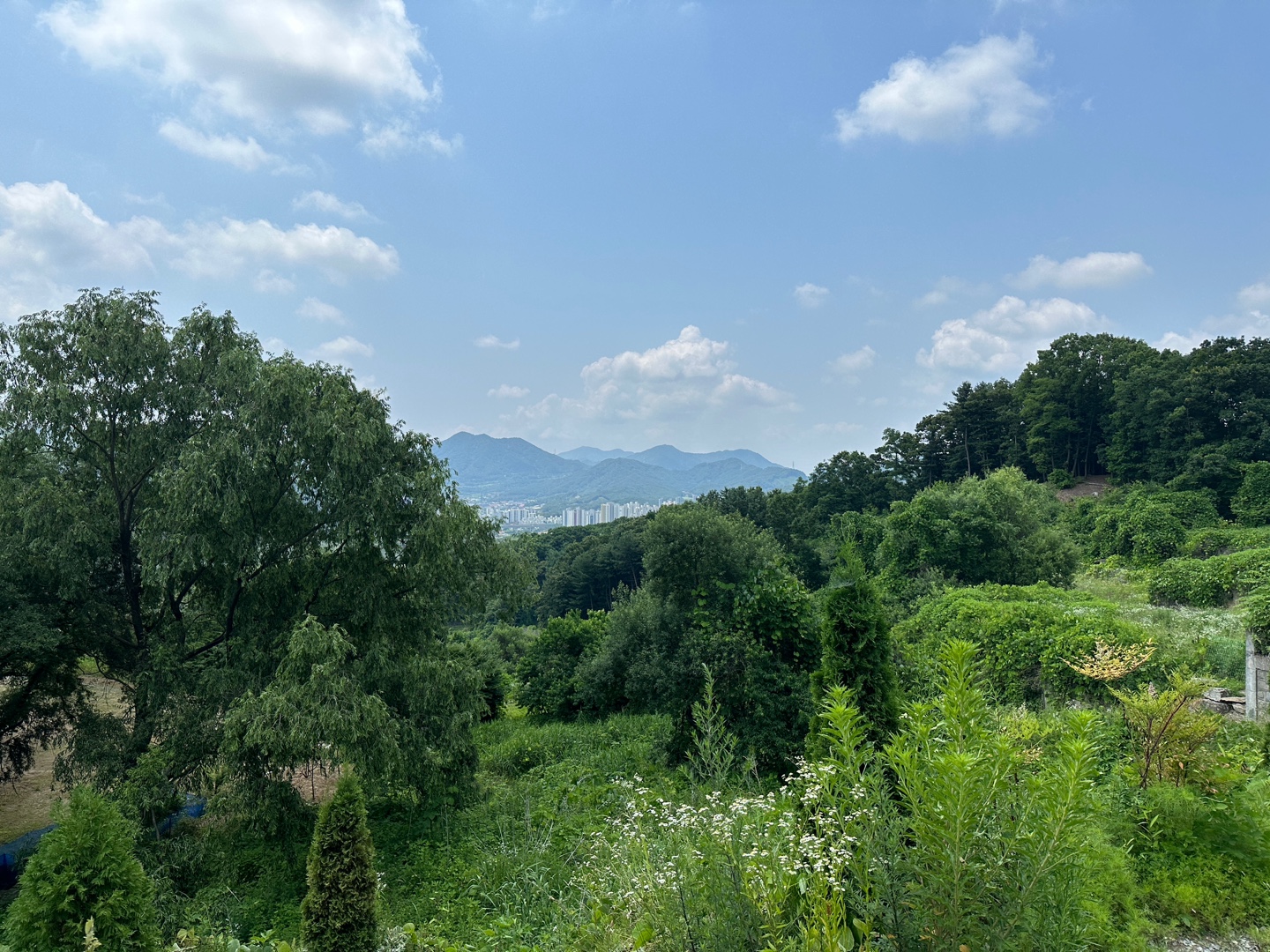 더위를 식히며 음료를 마시다가 외부도 궁금해서 살짝 나가보았어요. 정원도 예쁘게 꾸며져있고, 저 멀리 산 뷰 보면 아시겠지만 정말 높은 곳에 있다는 게 느껴지시지 않나요? ㅎㅎㅎㅎ 탁 트인 전망이 참으로 좋았습니다.