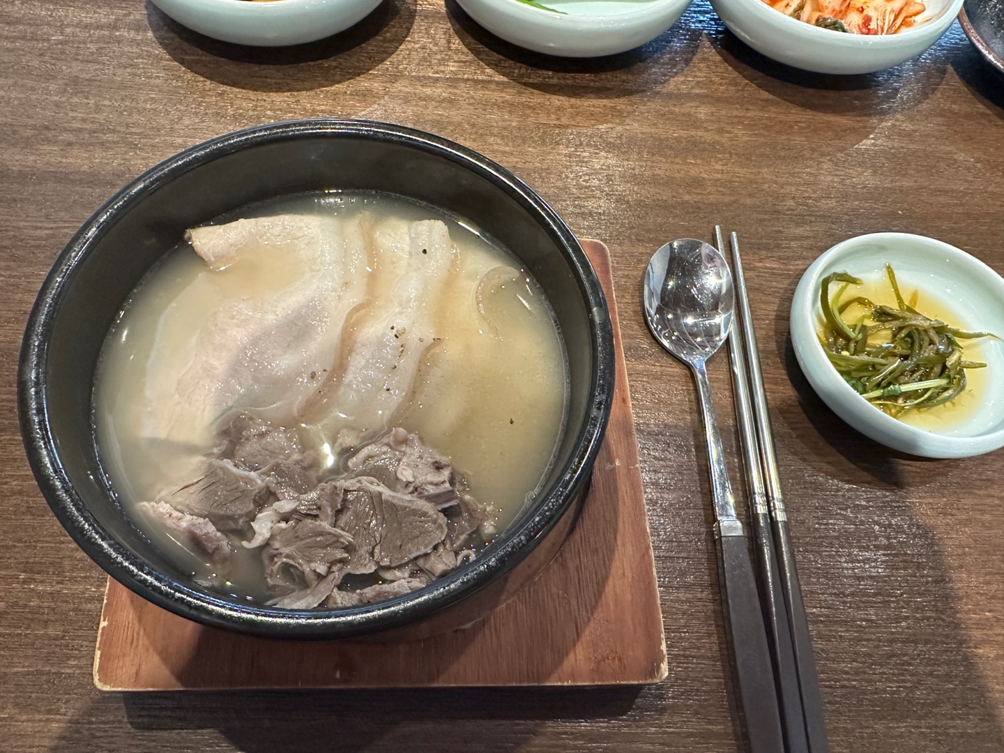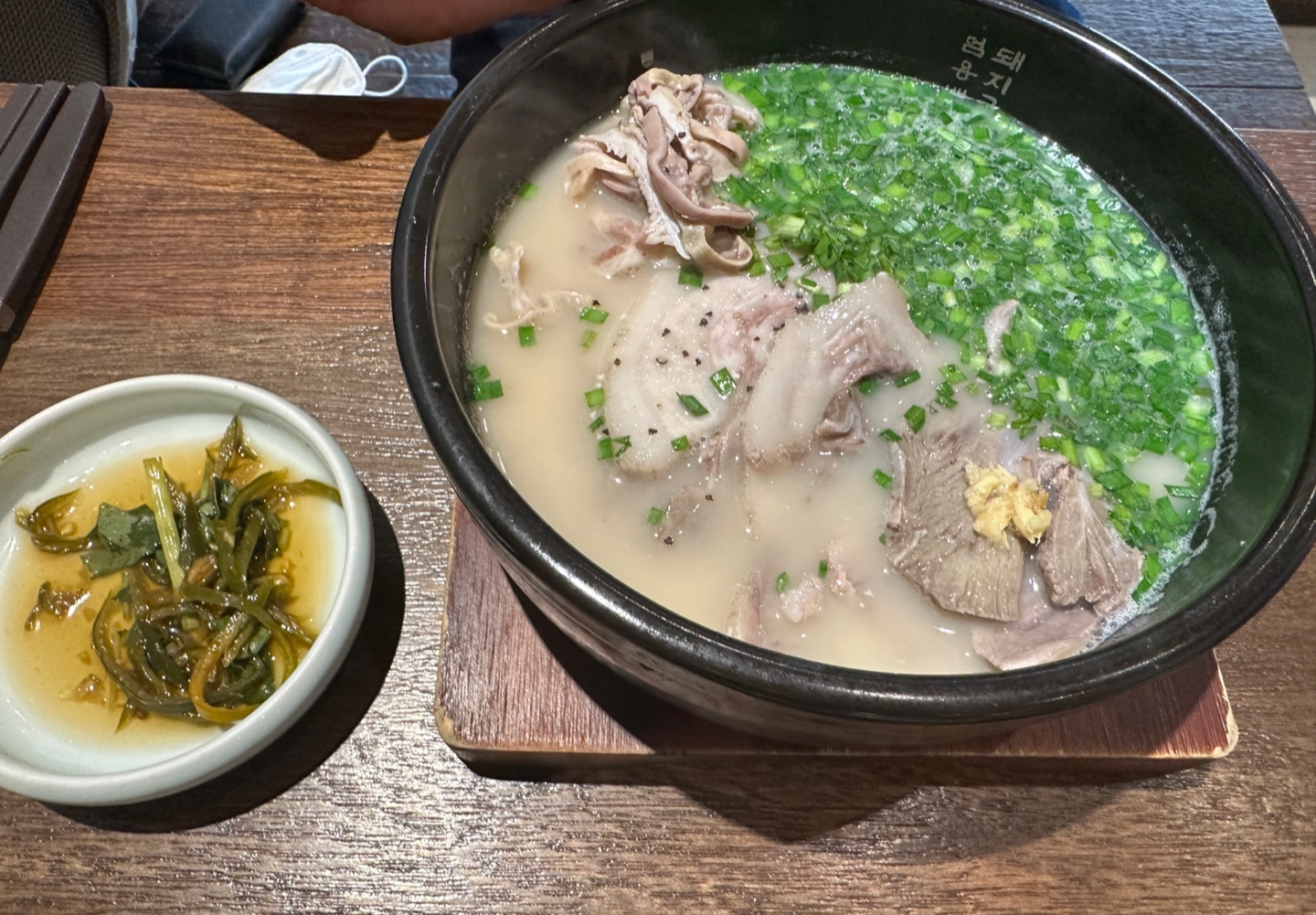 국밥의 양은 다른 돼지국밥집 가서 먹었던 것에 비해 엄청 많은 편은 아니지만, 국물이랑 같이 먹다 보니 배는 금방 부릅니다. 다만 고기가 얇은 편이라 이런 스타일을 싫어하시면 조금 씹는 맛이 아쉬울 수 도 있을 것 같아요.