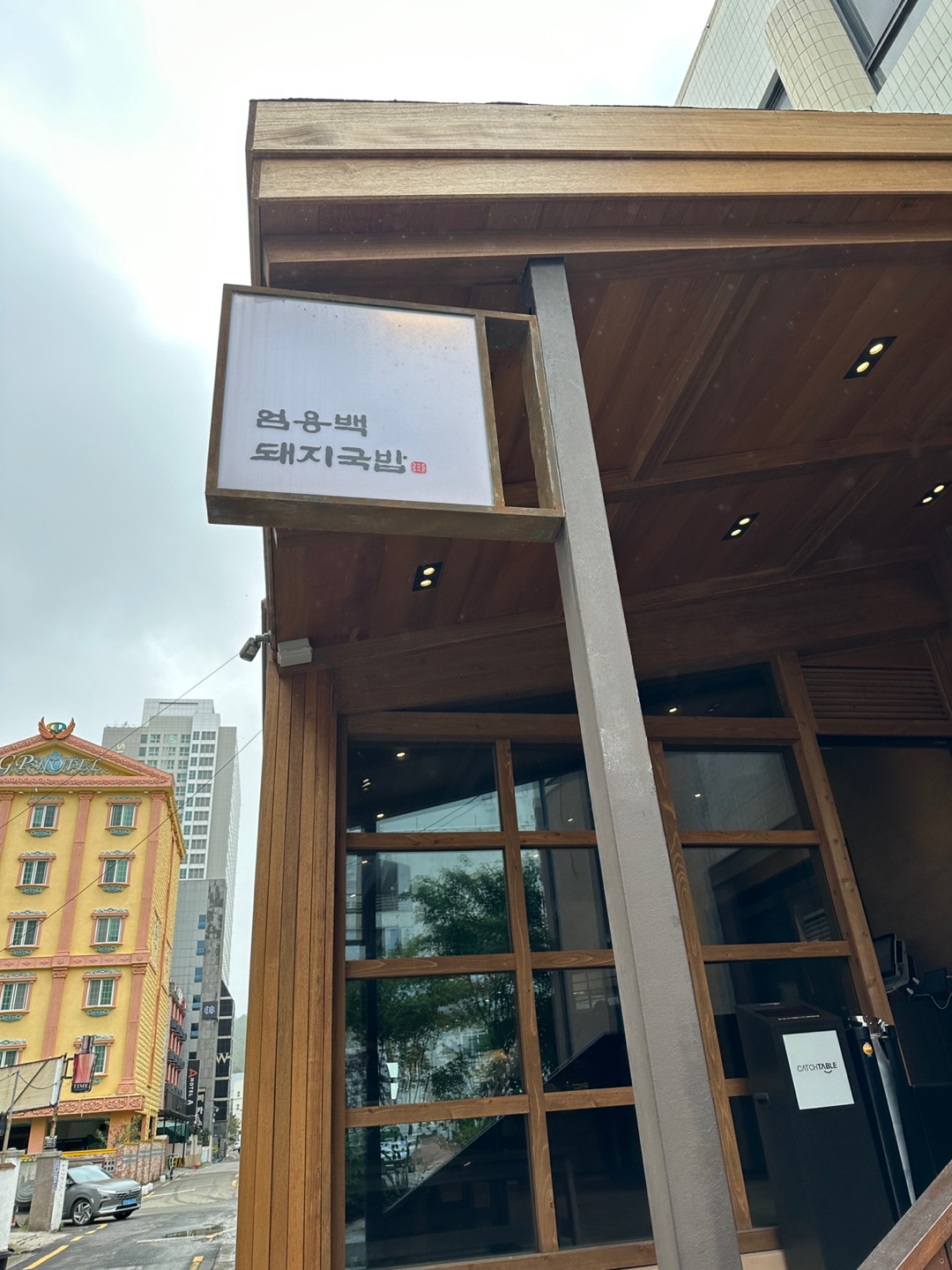 수영구 본점과 다른 으리으리한 스타일의 '엄용백돼지국밥'이었습니다. ㅎㅎㅎ새 거 느낌이 확 나지요! 아주 깔끔했고, 돼지국밥집 말고도 구워 먹는 고깃집인 '낙돈'이 한 울타리에 같이 운영되고 있었습니다. 나중에는 고깃집도 가보고 싶네요.