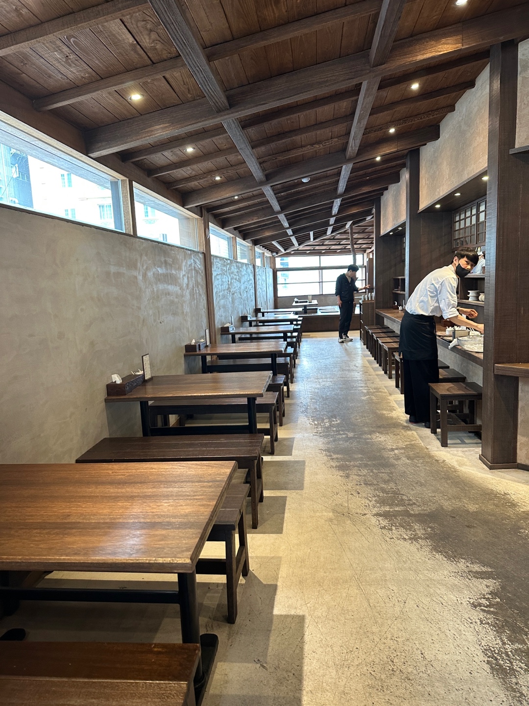 실내분위기는 이렇습니다. 아주 깔끔하죠! 4인 테이블 좌석이 쪼르륵 배치되어 있고, 안쪽으로 다리 넣을 수 있는 약간 단체석? 테이블이 또 마련되어 있습니다. 저는 약간 시간이 애매할 때 가서 사람이 없었는데 (오후 2시 이후에 도착했던 것 같아요. ㅎㅎㅎ) 평일에도 원래 웨이팅이 꽤나 있다고 하더라고요! 테이블링을 사용하고 계셔서 미리 등록하여 대기를 할 수 있었습니다.