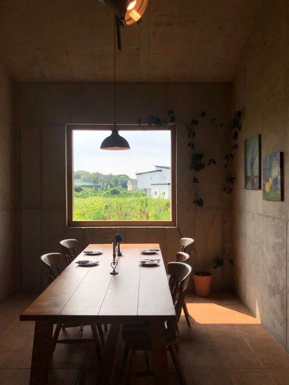 청수리라는 조용한 마을에 위치하고 있는데요, 아주 고즈넉한 분위기고 음식점의 외관도 외국의 어느 시골마을에 있을 것 같은 집의 모습이에요.