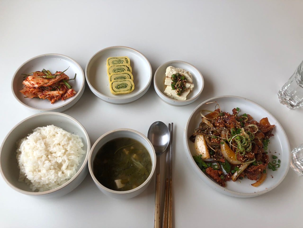 간도 적당하고 직접 제주콩으로 만드셨다던 두부 반찬도 너무 맛있었습니다. 감태넣고 둘둘 말은 계란말이도 너무 귀엽지 않나요? ㅎㅎ