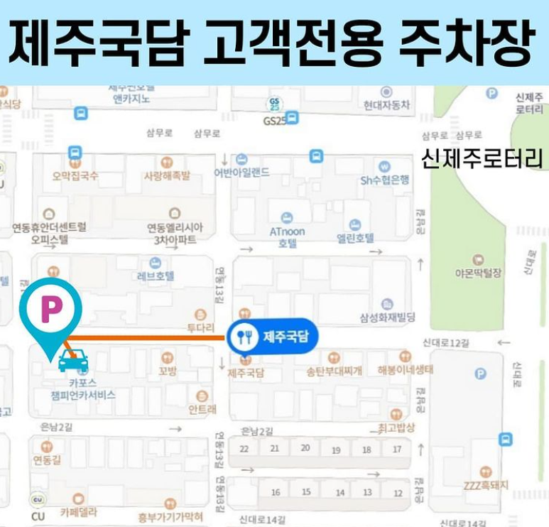 참고사항 : 주택가라 가게 앞에는 따로 주차할 공간이 없는데, 방문 고객을 위해 따로 주차장을 임대해서 사용하고 계시네요. 제주국담 인스타그램에서 가져온 사진인데 참고해 주세요! ㅎㅎ