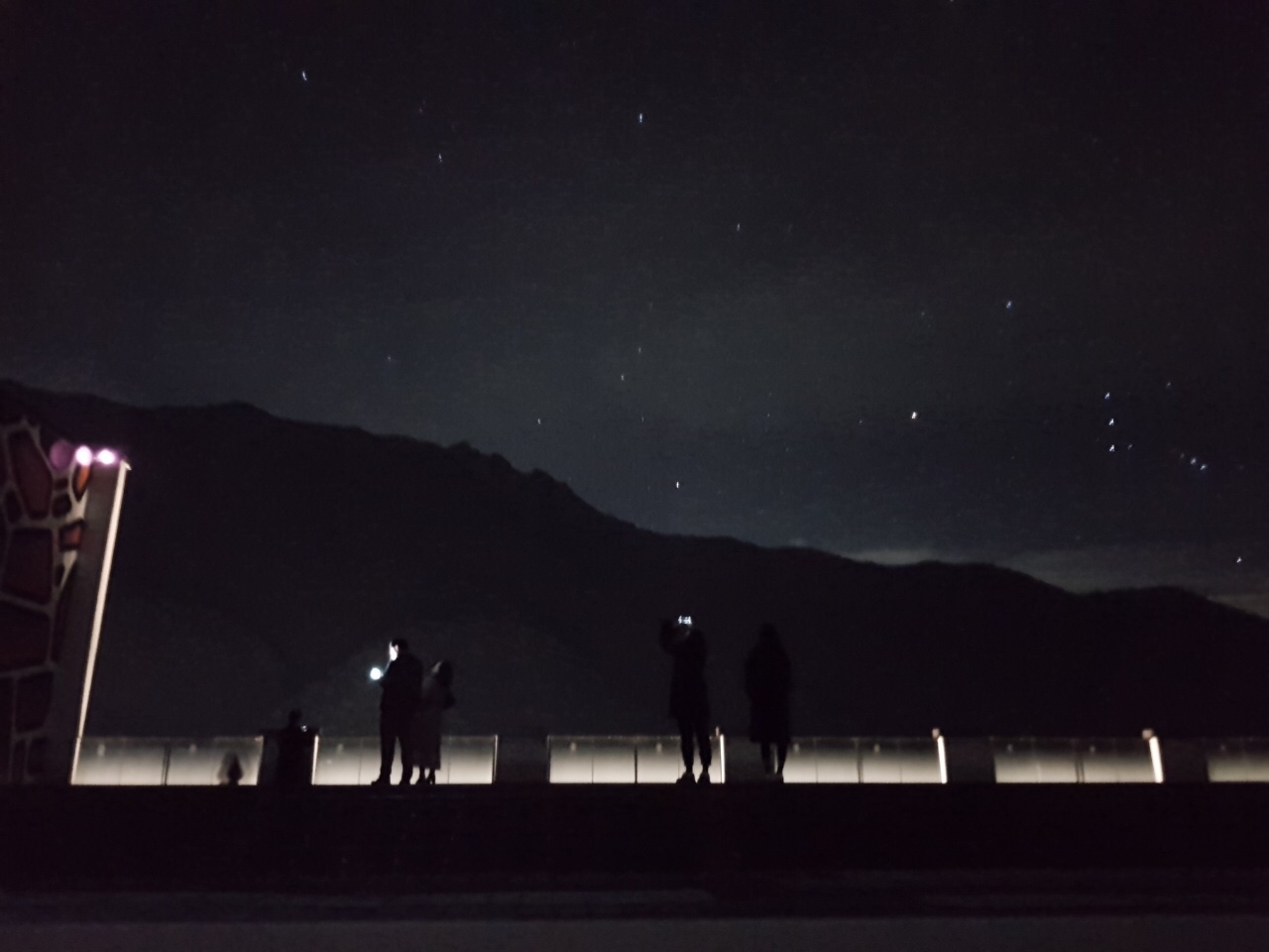 가지고 있는 핸드폰 기종을 어떻게 조절해야 별 사진을 찍을 수 있는지도 루프탑 문 앞에 자세하게 설명이 되어있더라고요. 그 사진으로 한 장 남겨본 사진입니다. 눈으로 보는 순간이 가장 예쁘지만 사진도 남기고 싶긴 하니까요. ㅎㅎㅎ