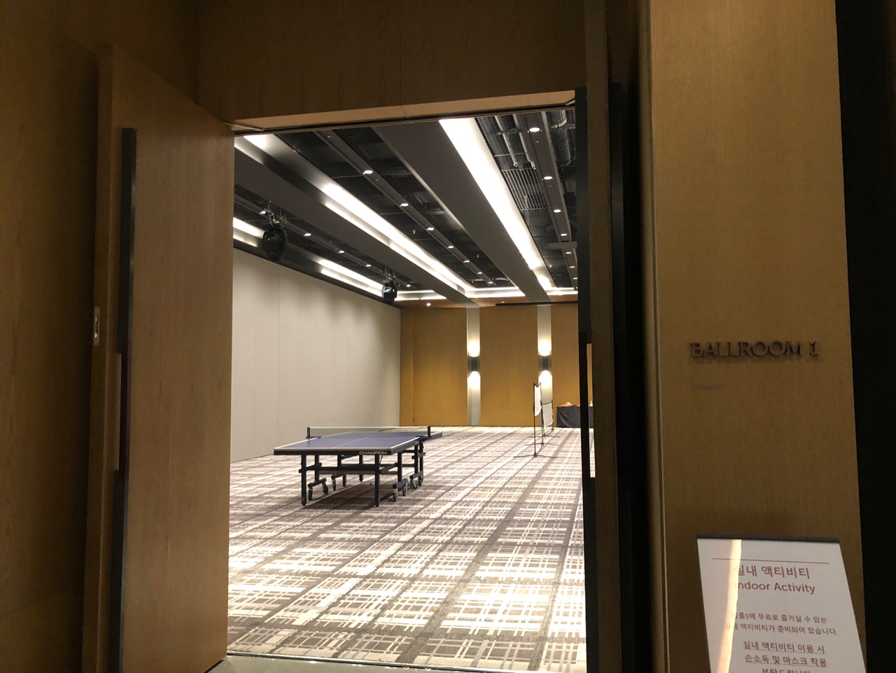 우선 실내 엑티비티룸이 따로 마련되어 있어서 탁구와 배드민턴을 할 수 있었습니다. 탁구대 2개와 배드민턴을 칠 수 있는 미니 네트 2개가 있고요, 채와 공도 다 준비되어있어서 몸만 가면 됩니다.ㅎㅎ