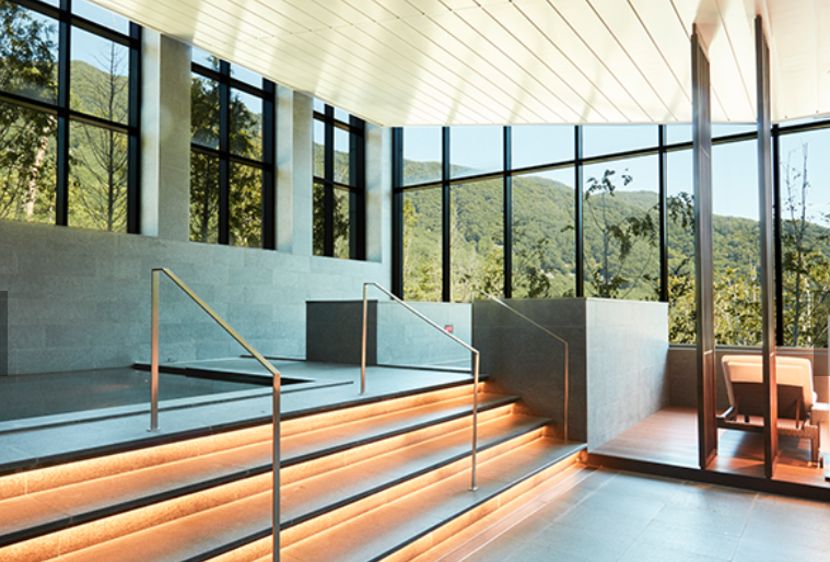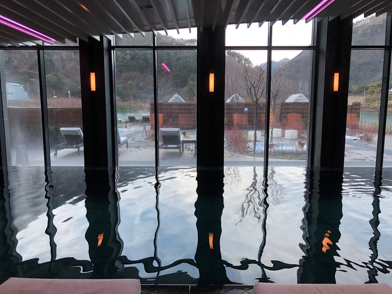 제가 방문한 동절기에는 야외 스파는 운영되지 않는 상태였어요. 리차드 우즈의 Blue Stone 작품이 담긴 수경시설로 유명한 곳인데요, 매우 낮기 때문에 수영을 할 수는 없는 곳입니다. 아이들이 이용하기 좋을 것 같더라고요.