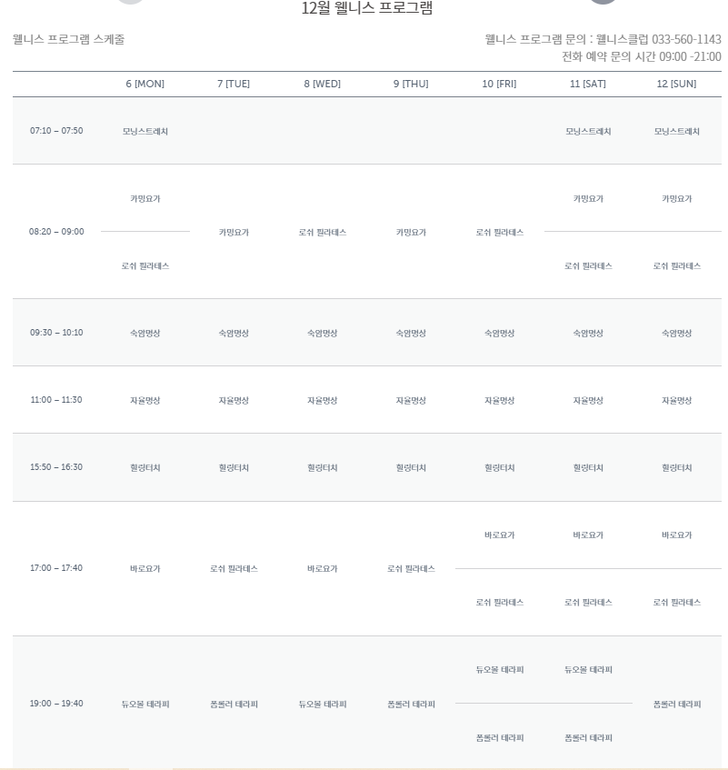 웰니스 프로그램 문의 : 웰니스클럽 033-560-1143