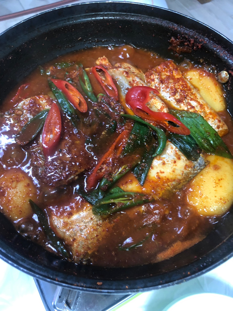 고춧가루로 칼칼하게 맛을 낸 갈치조림 역시 저는 무가 너무 좋아요. 양념이 잘 배어있는 무와 갈치를 밥에 얹어서 양념까지 스윽 비비면 정말 두 그릇 뚝딱 하는 맛이었습니다.
