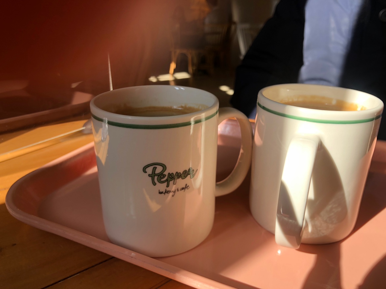 저는 인테리어 중 특히 벽 컬러가 너무 마음에 들더라고요. ㅎㅎ 은은한 핑크색! 카페 페퍼의 트레이드마크처럼 느껴졌습니다.