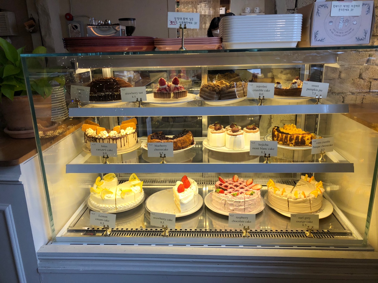 자리를 잡고 이제 주문을 하려고 왔는데 창가에 진열된 실온의 디저트들뿐만 아니라 냉장고 쇼케이스 안에도 케이크와 타르트들이 가득합니다. 정말 종류가 너무 많아서 무엇을 골라야 할지 모르겠더라고요. ㅎㅎ 예쁘게 생긴 디저트들을 계속해서 구경하게 되는 신기한 곳입니다. ㅎㅎ