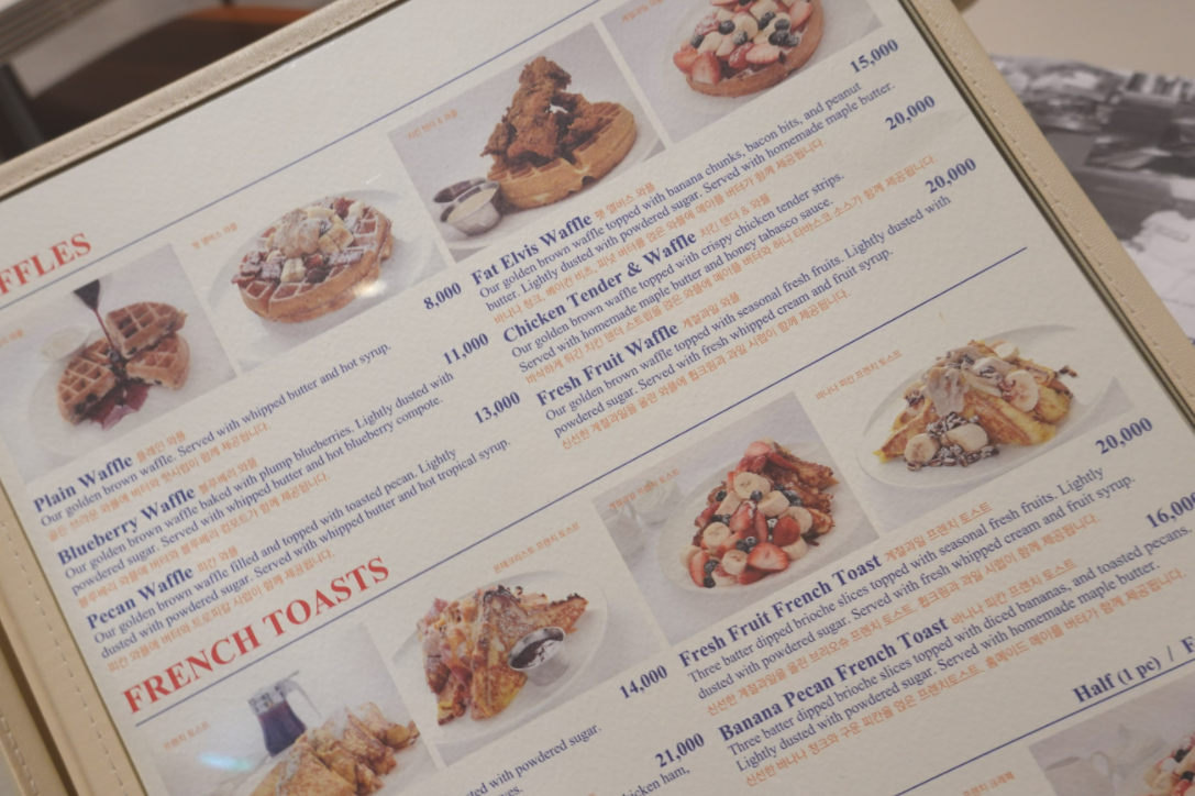 처음 방문하셔서 메뉴판을 보다 보면 종류가 정말 많아서 혼란스러워집니다. 와플, 크레페, 샐러드, 토스트등 굉장히 다양한 메뉴가 있는데, 팬케이크도 시키고 다른 메뉴도 먹고 싶어지면 이제 주문할 양이 많아집니다.