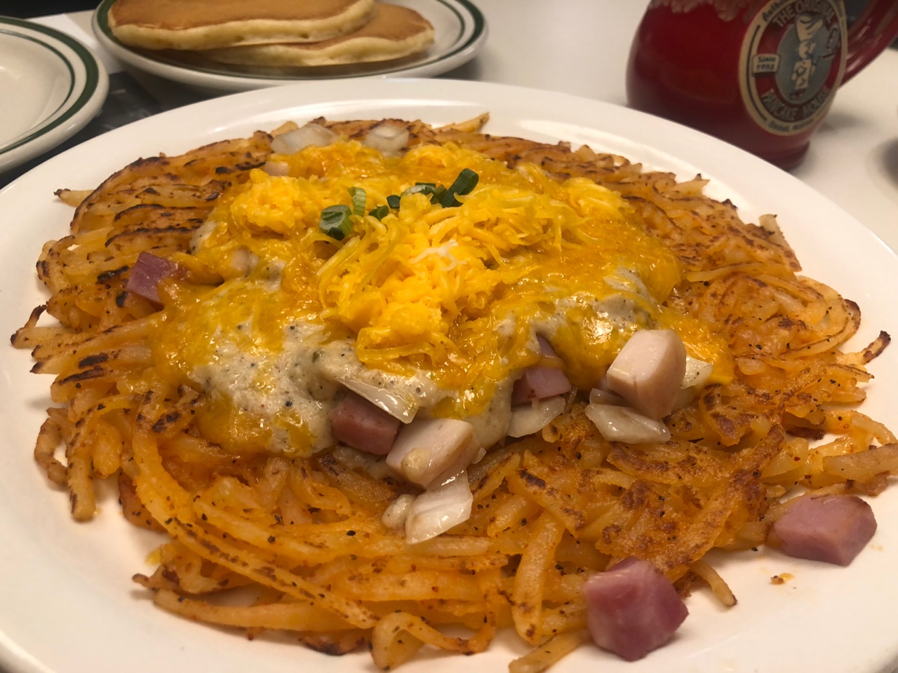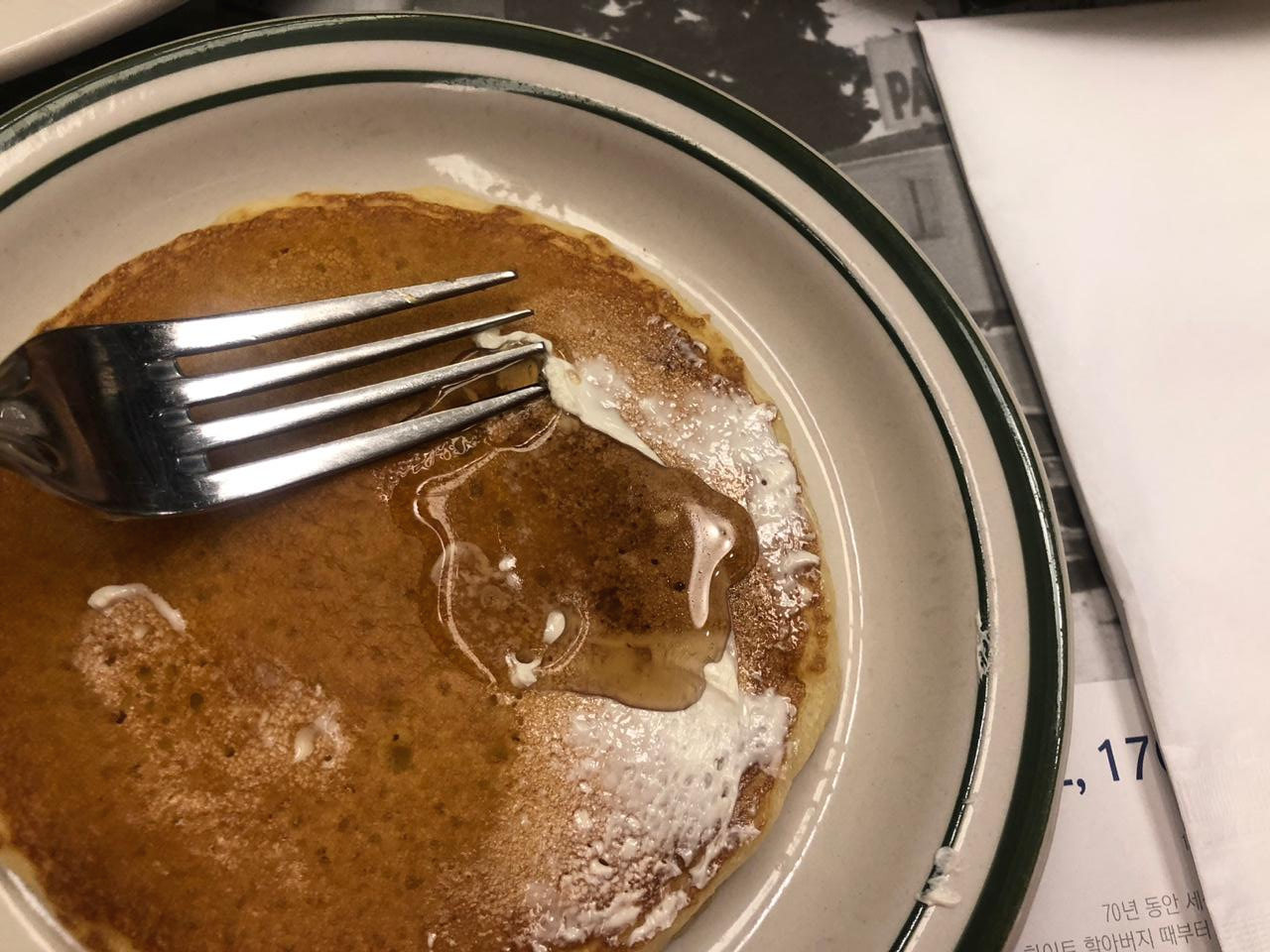 팬케이크만 먹으면 심심할 수 있는데 이 해쉬브라운 메뉴는 적당히 짭쪼름하고 위에 치즈와 어우러져서 고소한 맛이 납니다. 감자를 바삭하게 부치면.... 너무 맛있죠 뭐. ㅎㅎㅎㅎㅎㅎ 그런데 우리가 생각하는 완전 바삭하게 과자 같은 타입은 아니니 참고해 주세요! 약간의 아삭한 감자의 식감도 느낄 수 있습니다.