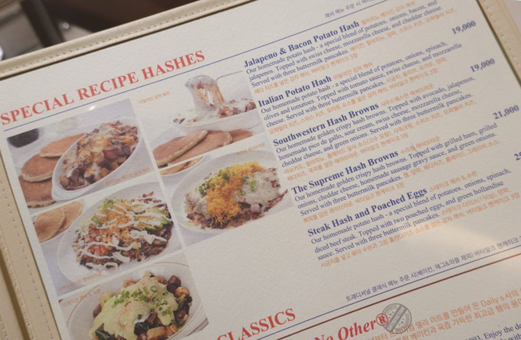 그럴 경우 오믈렛이나, 해쉬, 트레디셔널 클래식 메뉴를 주문하시면 버터밀크 팬케이크 3장이 추가로 제공됩니다. 사이드 메뉴처럼요!