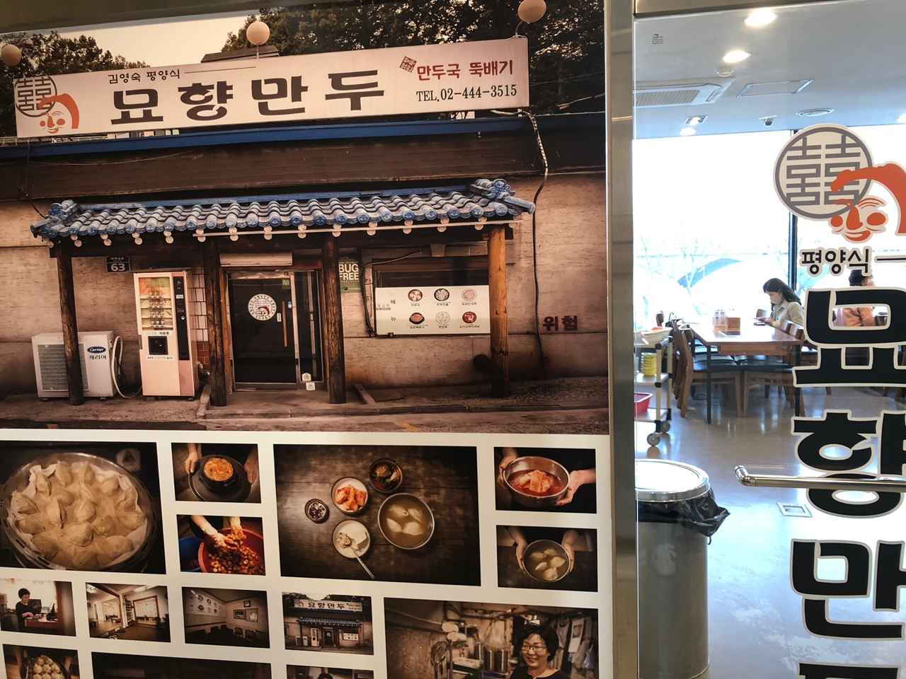 1층부터 메뉴판이 나와있어요. 단출하지만 꽉 찬! 6가지의 메뉴 중 마음의 준비를 하시고 2층으로 올라가시면 입구 옆에 이렇게 묘향 만두의 옛 모습을 만나볼 수 있습니다. 저 사진 속 가게가 딱 제가 생각했던 그런 느낌의 매장인데 ㅎㅎ 지금은 아주 신식입니다.