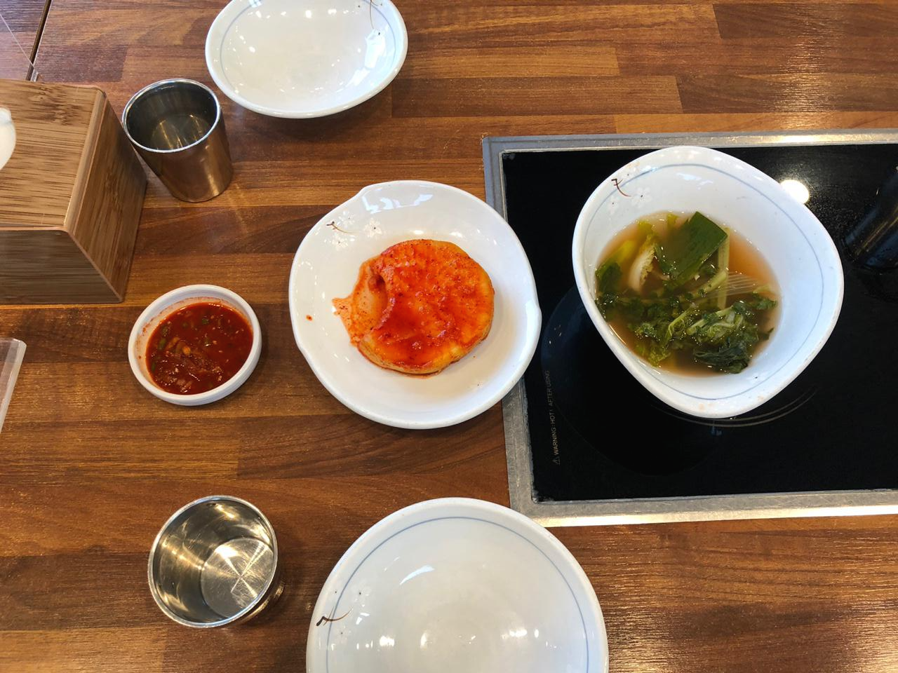 기본으로 나온 나박김치와 국물김치도 시원하고 맛있었습니다. 나박김치는 잘라먹도로 하나 통으로 주시더라고요. ㅎㅎ