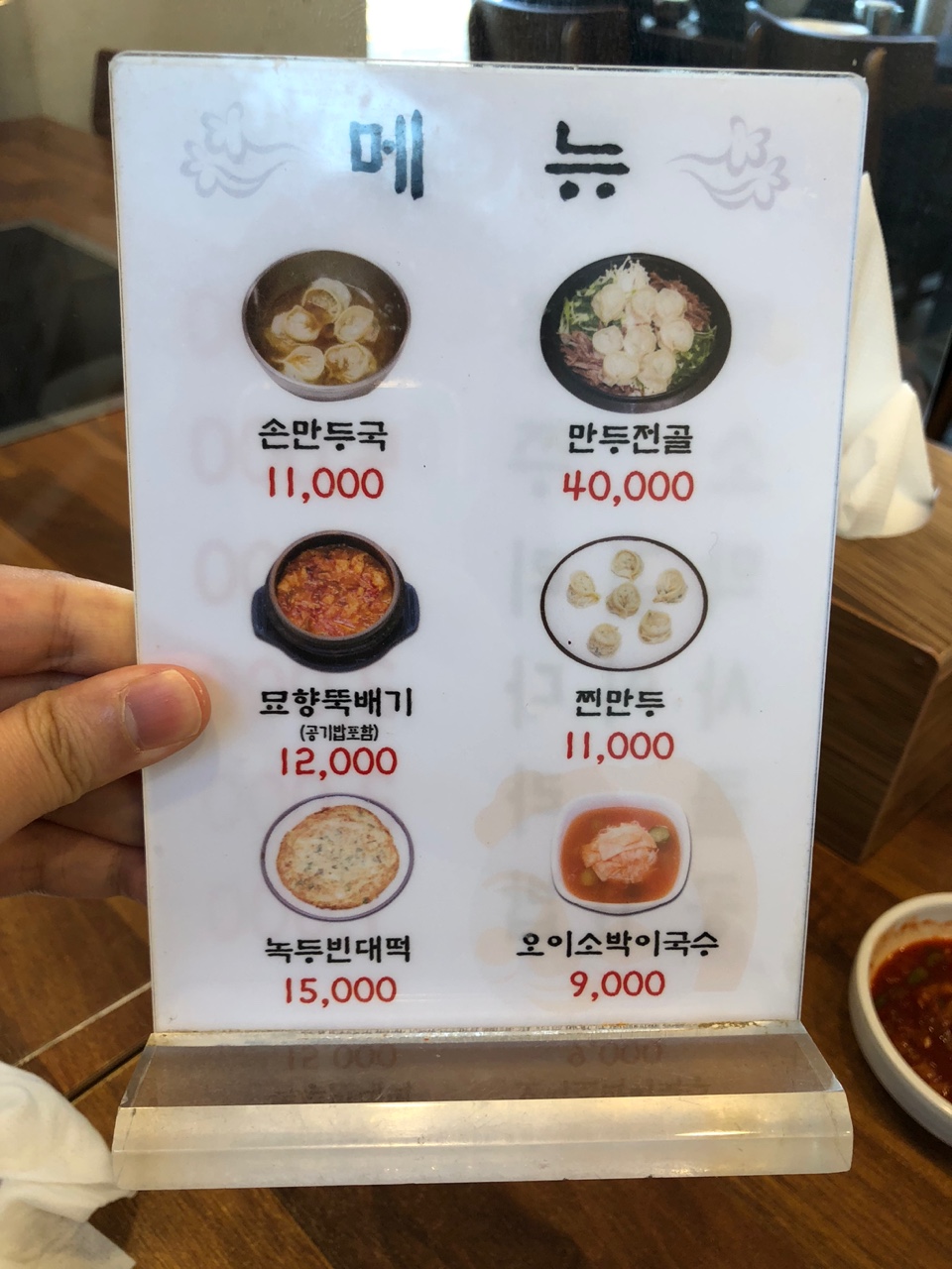 손만둣국과 묘향 뚝배기 하나씩을 주문해서 같이 먹었는데, 뽀얀 만두 국물과 빨간 뚝배기 국물 두 가지 모두 포기할 수가 없었거든요. ㅎㅎ