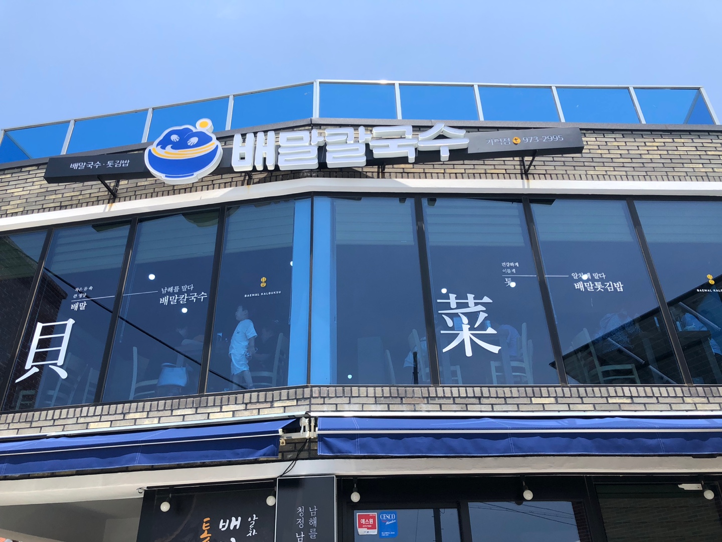 첫번째로 소개해 드릴 곳은 배말칼국수와 톳김밥을 판매하는 배말칼국수김밥집입니다. 주소를 보고 조금 놀라셨나요? ㅎㅎ 부산 가덕도로 나오고 있는데, 이 가게는 거제와 통영 근처까지 매장이 꽤 많이 있더라고요! 저도 처음엔 거제도 내에 있는 매장을 찾아두었는데, 거제도로 들어가는 날 부산에서 들어가는 길로 가다가 점심시간이라 급히 찾다가 가덕점을 찾게 되었답니다.