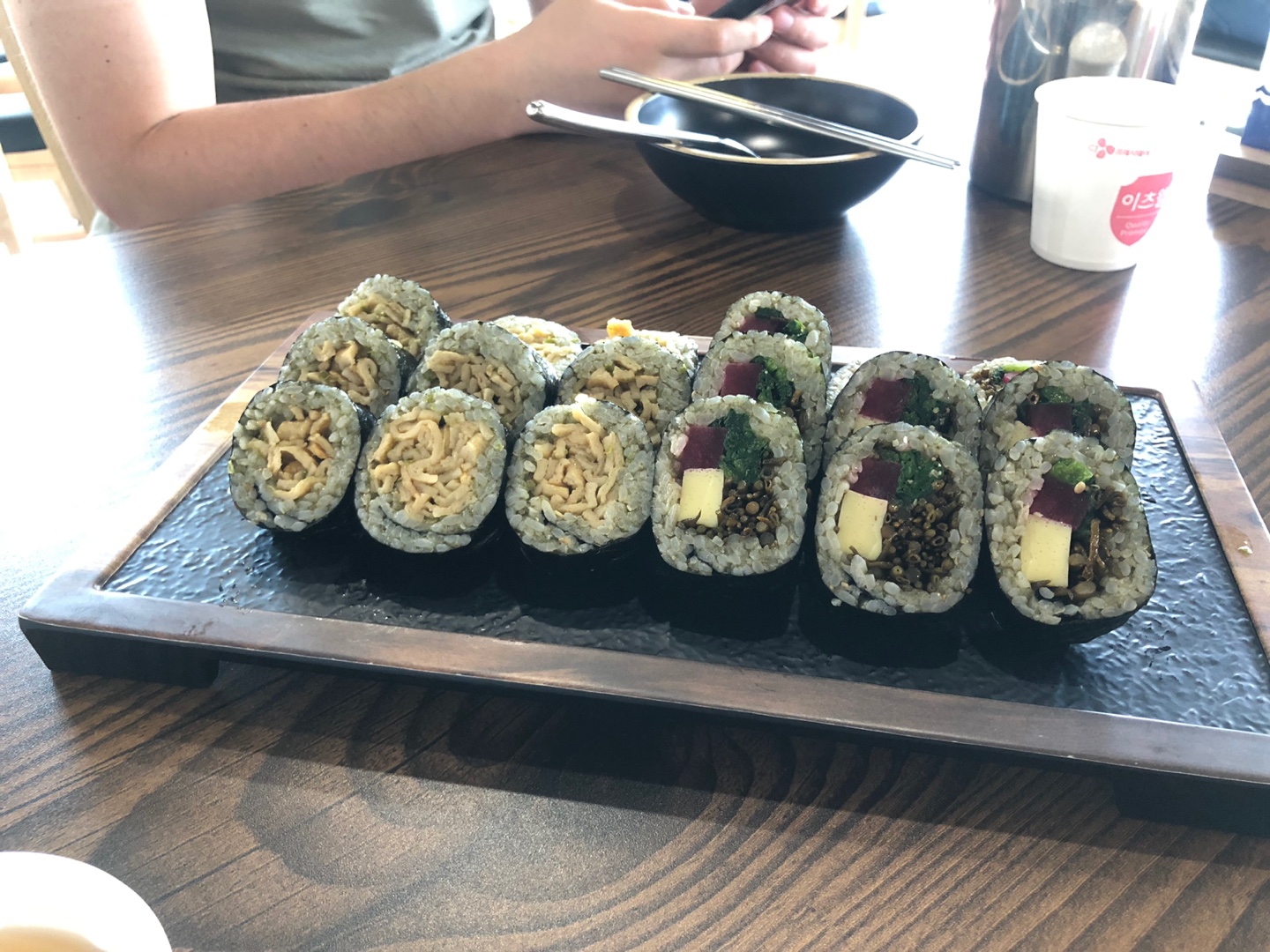 한상차림이라 쟁반이 그대로 들어가야 하기 때문에 테이블도 널찍하고 좋았습니다. ㅎㅎ