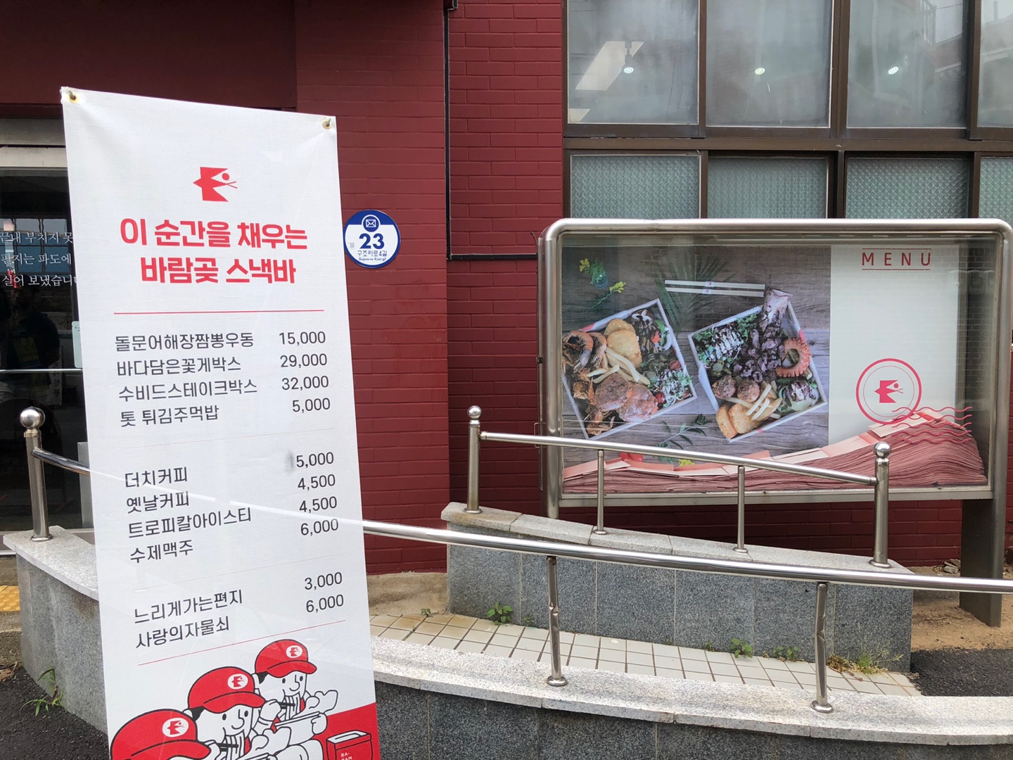 거제도에서 바다 바람을 맞고 약간 뜨끈한 음식을 드시고 싶다면 해물짬뽕이 있는 여기가 딱이지 않을까 싶어요. ㅎㅎ 이름이 바람곶우체국인만큼 정말 외관은 엇.. 여기 음식을 판매하는 곳이 맞나? 싶게 정말 우체국 같습니다. ㅎㅎ