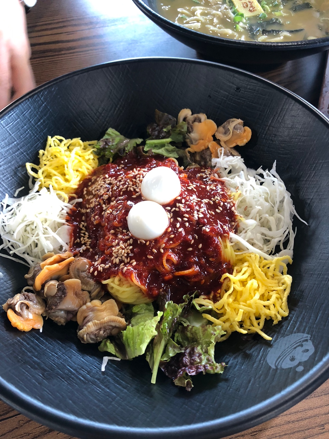 꼬막비빔국수는 부족할까 봐 급히 넣어서 먹었는데 새콤하니 맛있었습니다. 그래도 배말칼국수 승! 저는 인원이 많아서 다양하게 시켜볼 수 있었는데요 한두 개만 시켜야 한다면 배말칼국수를 꼭 시킬 것 같으니 참고해 주세요. ㅎㅎ