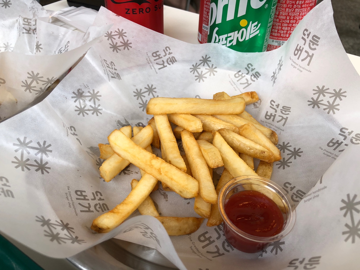 버거는 육즙이 가득해서 줄줄 아래로 나올 정도였어요. 정말 부드럽고 치즈와의 합도 좋았던 것 같아요. 번도 맛있어서 한입 콱 같이 베어 물 때 행복해지는 맛이었습니다. 감자튀김도 바로 막 튀겨주셔서 따뜻하고 부드럽고 포송포송? 했답니다. ㅎㅎ