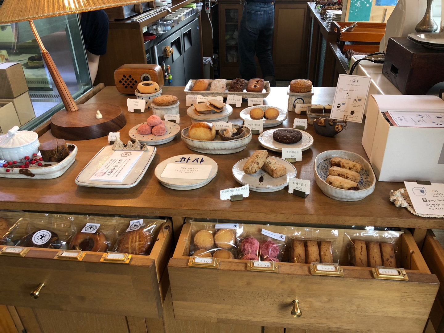 상가에는 구움 과자들과 디저트도 다양하게 판매하고 있었어요. 음료와 구움 과자 또는 디저트를 함께 곁들일까 하다가, 덕둔 버거에서 너무 든든하게 먹고 와서 ㅎㅎㅎ 디저트 주문은 패스합니다.
