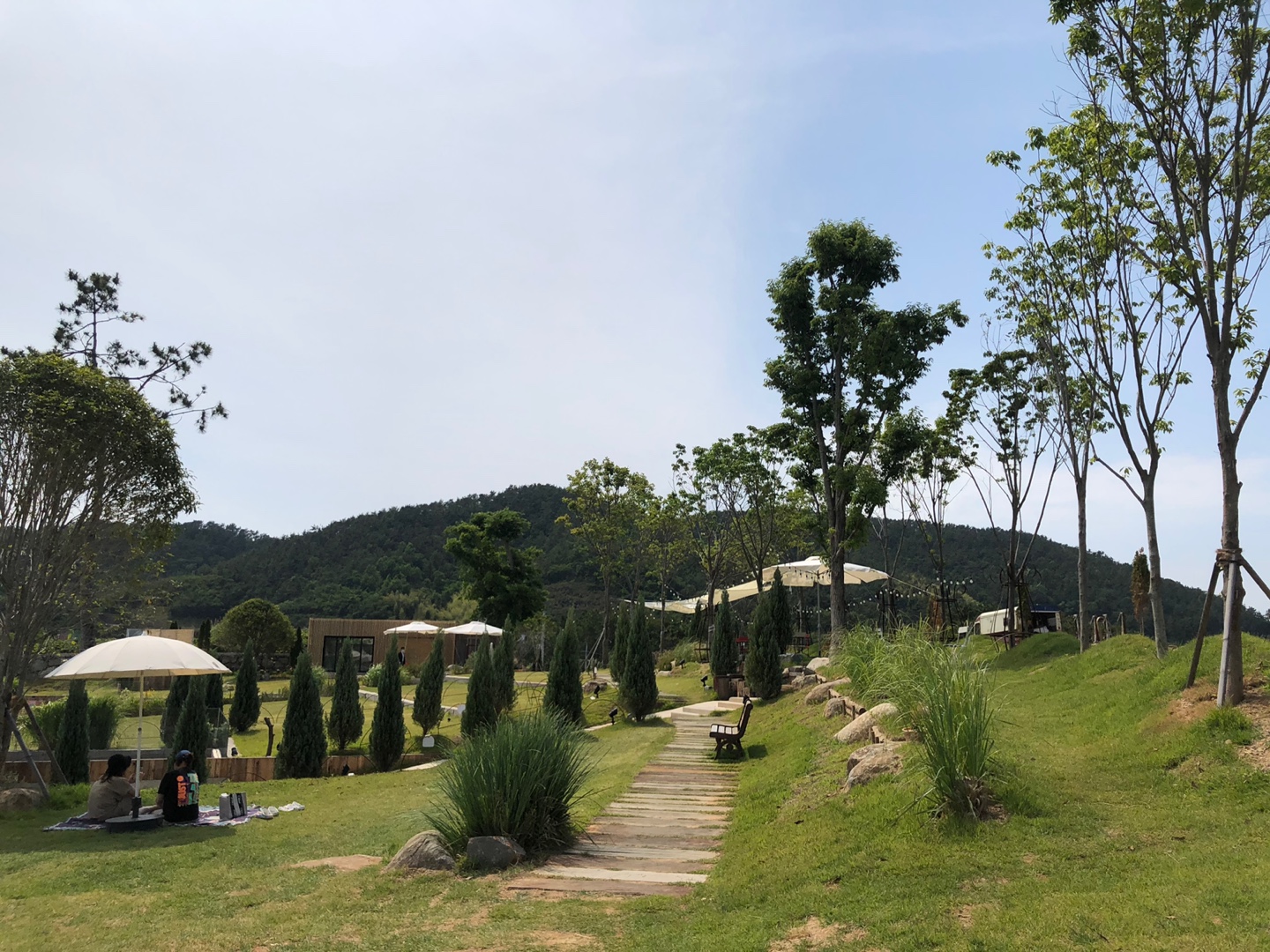 벤치 자리도 있고, 파라솔에 피크닉 매트도 깔려있어서 정말로 피크닉 하는 느낌으로 즐길 수 있게 되어있었어요. 취향에 맞게 다양한 공간에서 즐기실 수 있을 것 같습니다.