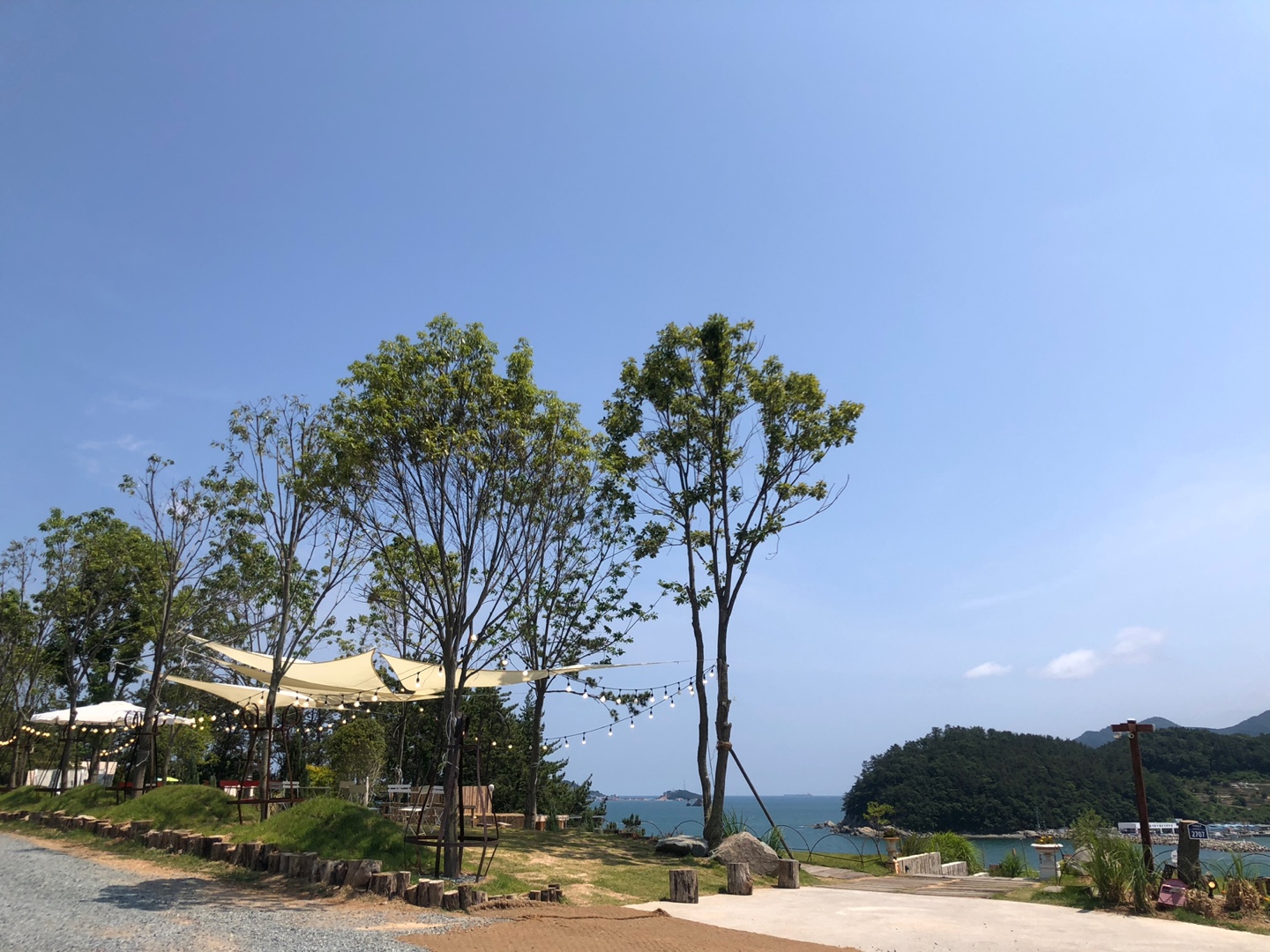 굉장히 넓은 공간에서 아름다운 바다뷰를 즐길 수 있고 사진 찍기 좋은 포토존들도 많아서 커피 한잔 하면서 사진도 찍고 편하게 쉬다가 수 있는 카페였습니다.