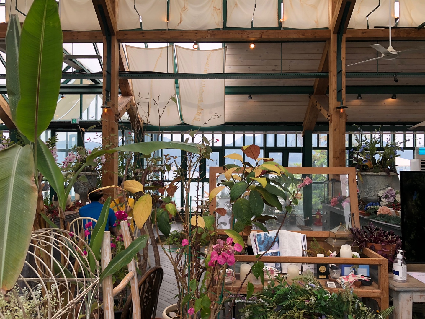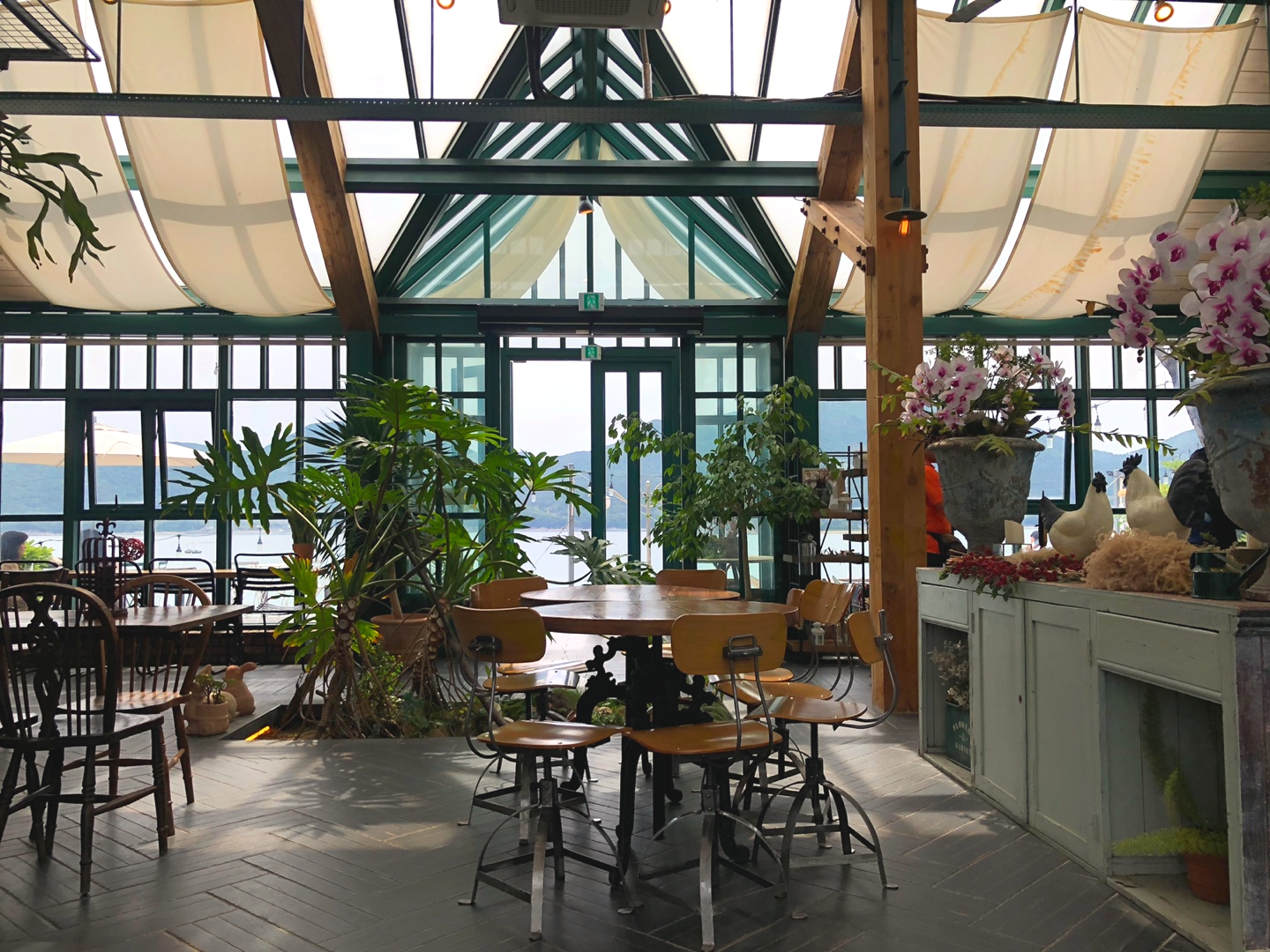 아름다운 유리 온실에 들어온 기분이 드는 카페 내부입니다. 일단 공간이 엄청 넓어서 좋았고, 유리온실 밖으로는 바다까지 정말 완벽하네요.ㅎㅎ