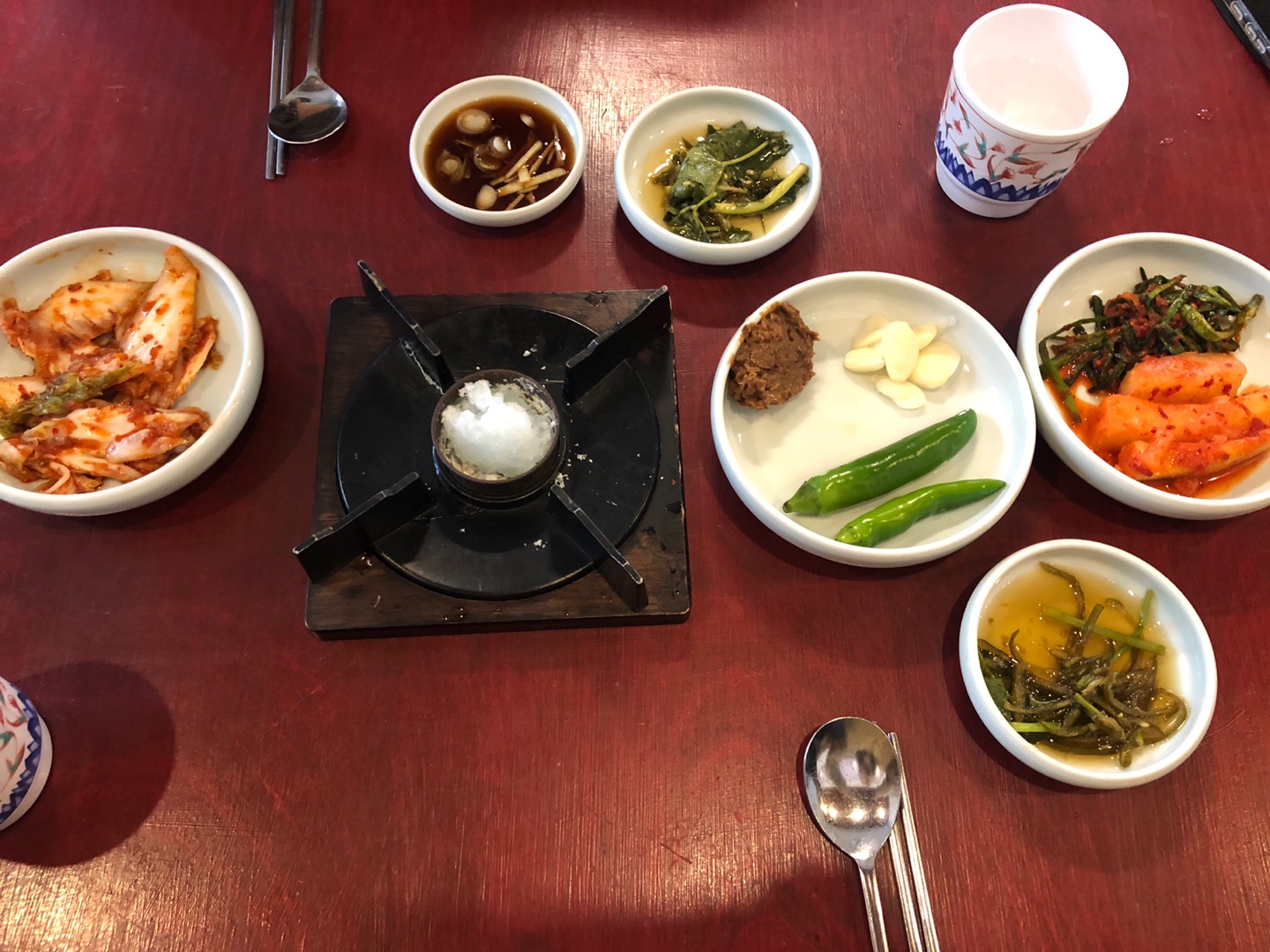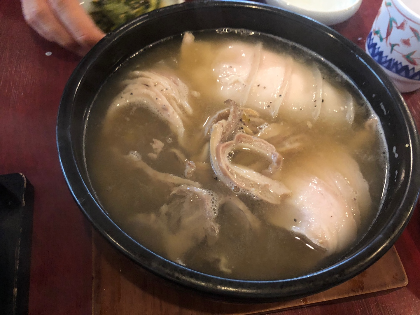 밑반찬이 세팅되고 고기가 나왔습니다. 계속 따뜻하게 데우면서 먹을 수 있도록 미니 화로? 도 함께 나왔어요. 백반을 시켜도 국물은 하나 더 나와서 좋았습니다. ㅎㅎ 그리고 나온 돼지국밥! ㅎㅎ 비쥬얼은 그저 그렇지만...? 정말 맛있었어요. ㅎㅎㅎㅎㅎ 국물도 맑은 게 이전에 먹었던 돼지국밥과는 좀 다른 스타일이었는데 저는 이게 참 마음에 들고 좋았습니다.