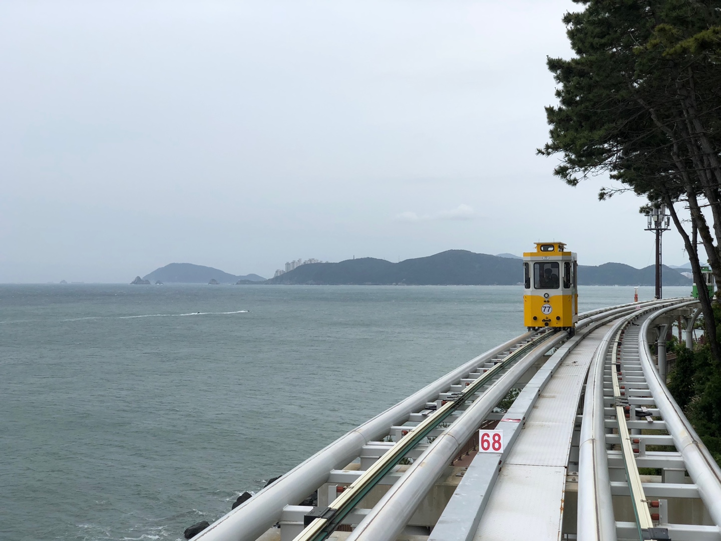 출발하면서 찍은 사진들과 반대편에서 오는 스카이 캡슐을 찍어본 사진들입니다. 옆에 지나가는 캡슐들도 너무 귀여워요. ㅎㅎㅎ 레일은 이렇게 바로 붙어있고, 옆에 캡슐이 없을 땐 가로막는 시야가 없어서 바다를 즐기기에도 전혀 문제가 없었습니다. 캡슐이 계속 옆에 붙어있을 일은 없으니까요.ㅎㅎ