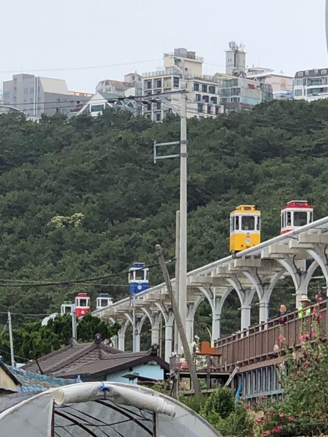 출발하면서 찍은 사진들과 반대편에서 오는 스카이 캡슐을 찍어본 사진들입니다. 옆에 지나가는 캡슐들도 너무 귀여워요. ㅎㅎㅎ 레일은 이렇게 바로 붙어있고, 옆에 캡슐이 없을 땐 가로막는 시야가 없어서 바다를 즐기기에도 전혀 문제가 없었습니다. 캡슐이 계속 옆에 붙어있을 일은 없으니까요.ㅎㅎ