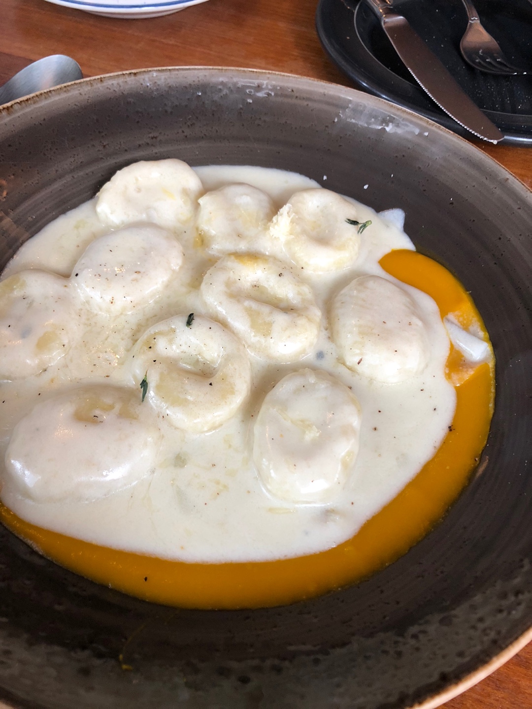 치즈향이 가득 담긴 크림소스에 단호박 퓌레까지 더해져 부드럽고 고소하고 지금 이 글을 쓰는 순간에도 또 먹으러 가고 싶은..ㅎㅎ 두오모의 대표 메뉴입니다. 제가 먹어본 뇨끼 중 BEST라고 할 수 있을 것 같아요. ㅎㅎ