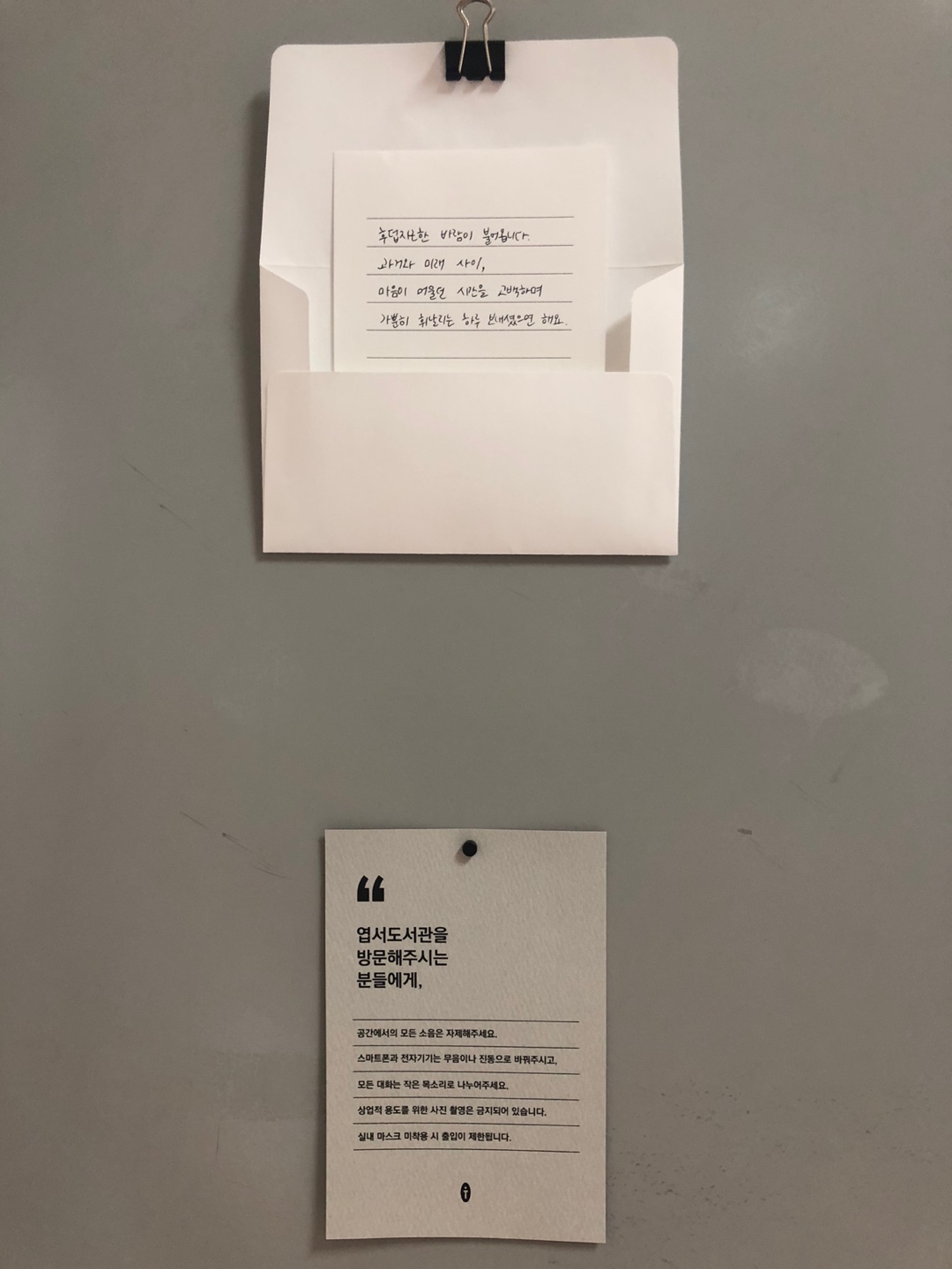 기록보관함 서비스는 네이버에서 예약 후 방문하시면 테이블이 배정되어 그곳에서 본인만의 시간을 가지고 편지를 적거나 준비를 해서 저 캐비닛에 넣고 열쇠를 받아가는 순으로 진행되는 것 같아요. 관심 있으신 분들은 예약 후 방문해서 감성이 샘솟는 시간 가져보시면 좋을 것 같습니다.