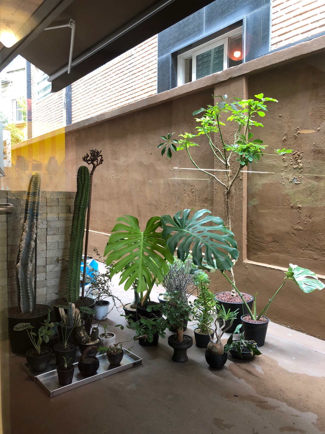 테이블에 사람이 가득 있어서 찍지는 못했는데 협소하지만 앉아서 즐기실 자리가 몇 개 있고 뒤뜰?이라고 하기에는 조금 작은 공간이지만 창 밖으로 식물이 보이는 공간 옆에도 테이블이 하나 있었습니다.