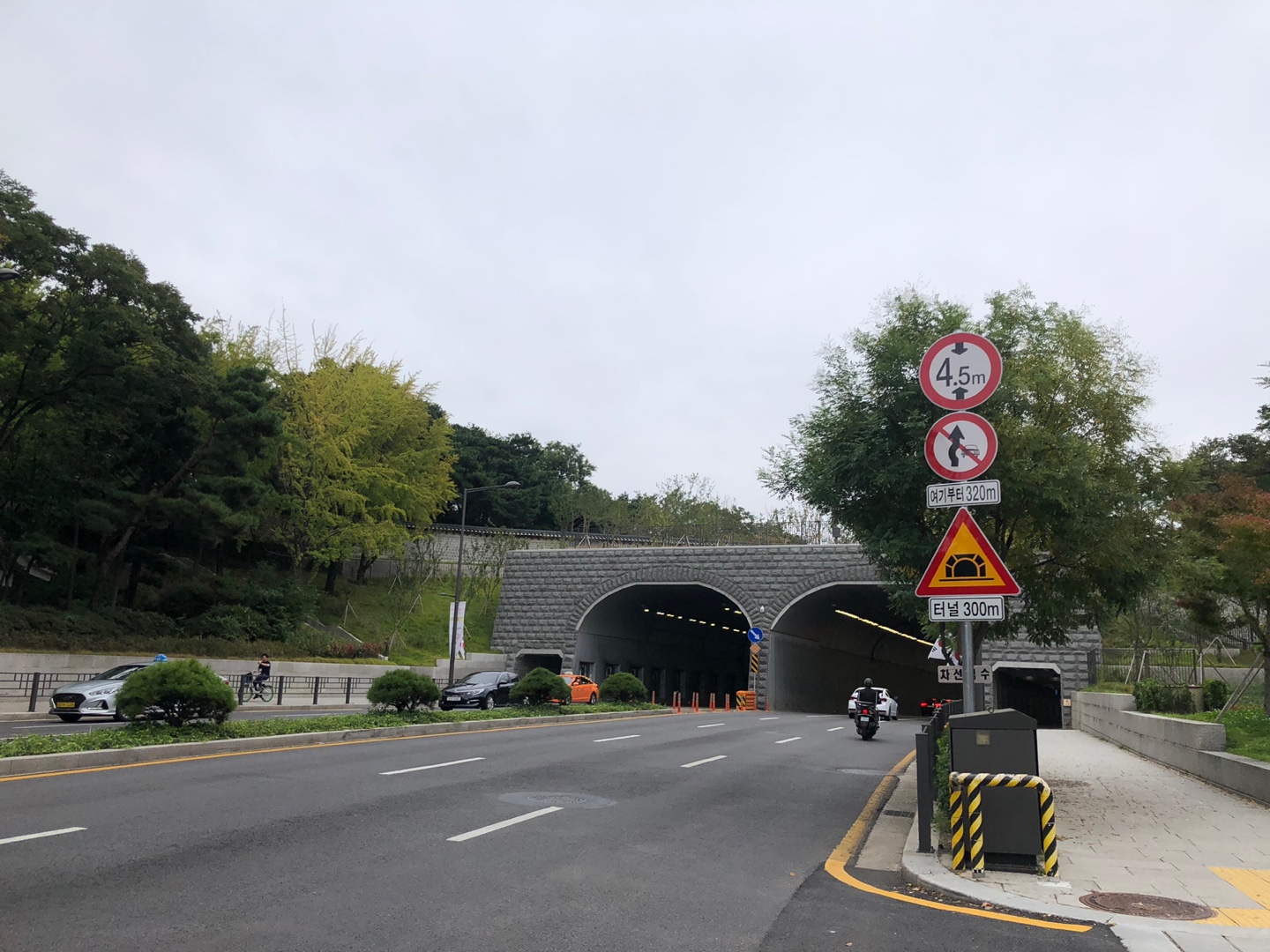 창경궁 입구를 등지고 보면 왼편으로 새로 생긴 터널이 보이고요, 그 위가 오픈된 궁궐담장길입니다. 옆으로 걸어 올라갈 수 있는 계단과 오르막길이 있습니다.